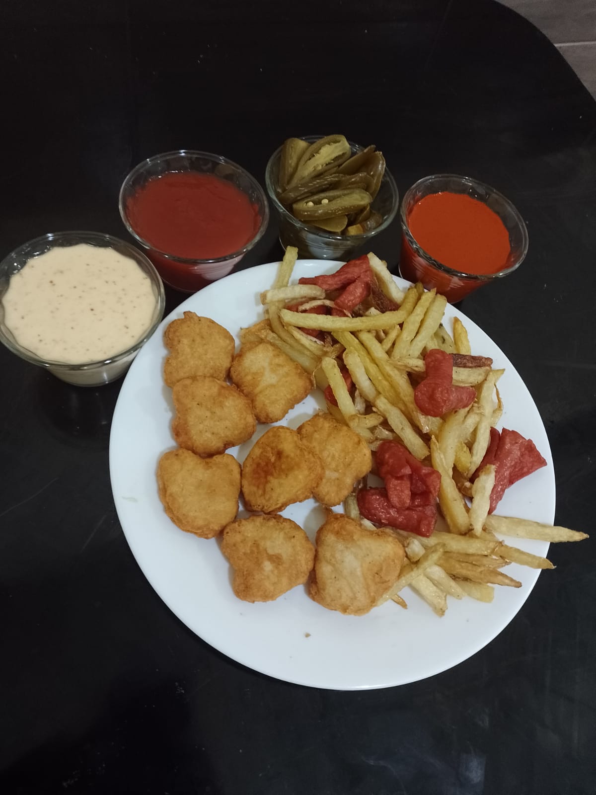Dedos de Queso con Aros de Cebolla con Salchipapas