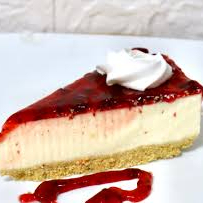 Rebanada de cheesecake acompañada de mermelada y frutos naturales