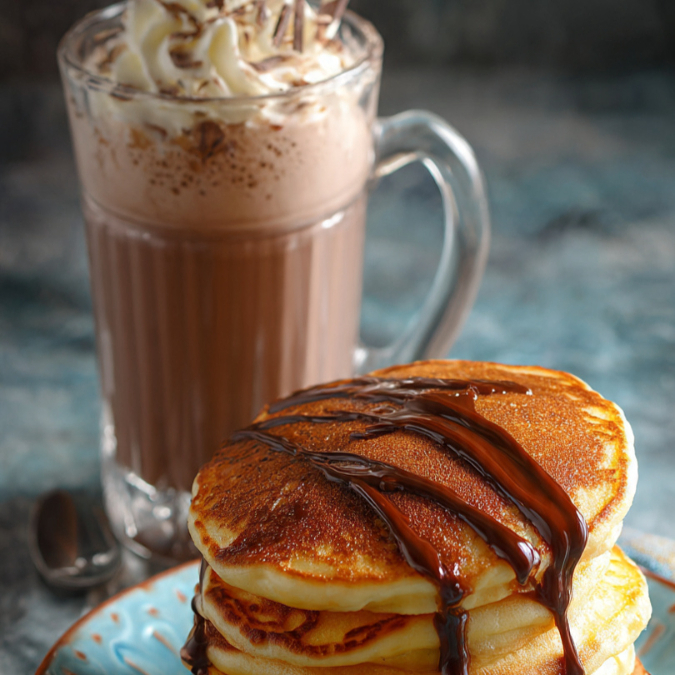 Hot Cakes con maple y mermelada de frutos acompañado de malteada 10oz