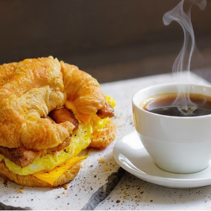 Cuernito con jamón, queso y huevo acompañado con bebida de tu elección