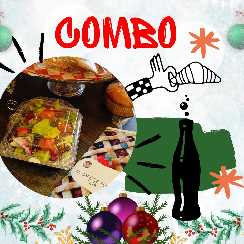 Ensalada individual, cuernito de jamón y queso amarillo con bebida de 355ml
