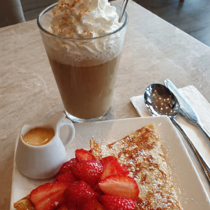 Crepa dulce rellena con frutos naturales y topping de tu elección.