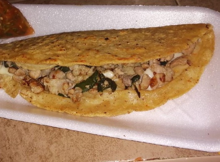 Elige el ingrediente. Quesadilla con carne, salchicha o chorizo.