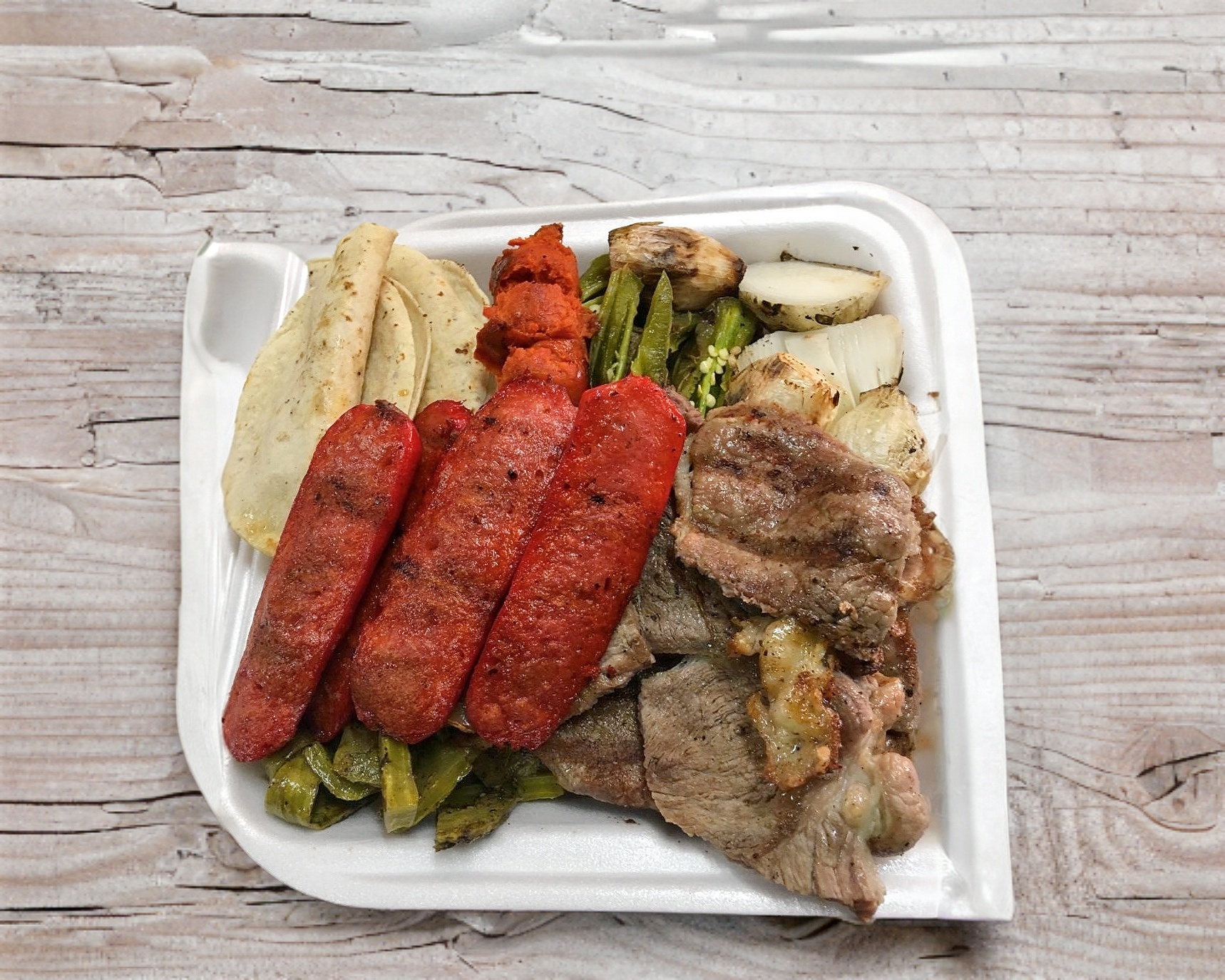 Incluye 1/2 kg de deliciosa arrachera, 2 salchichas asadas, 2 quesadillas, 250gr. De papas a la francesa, salsas tortillasy