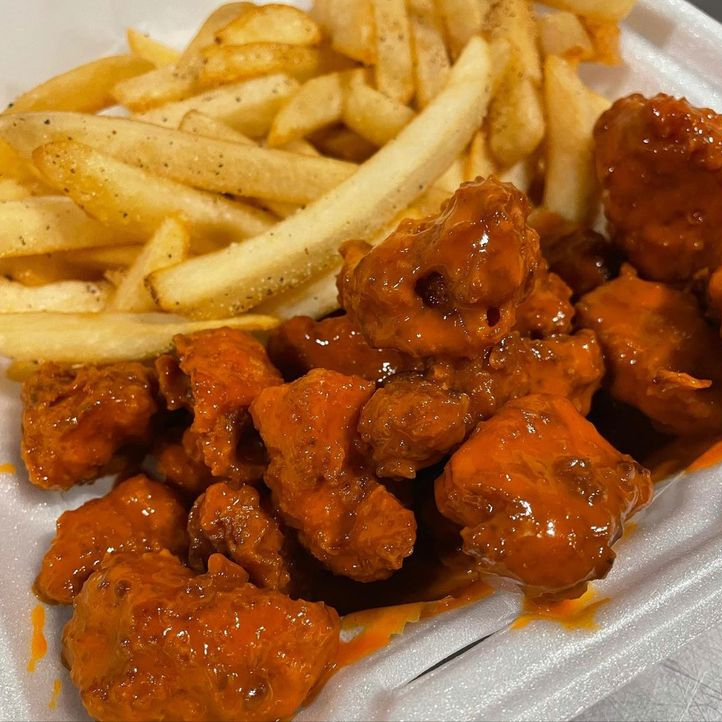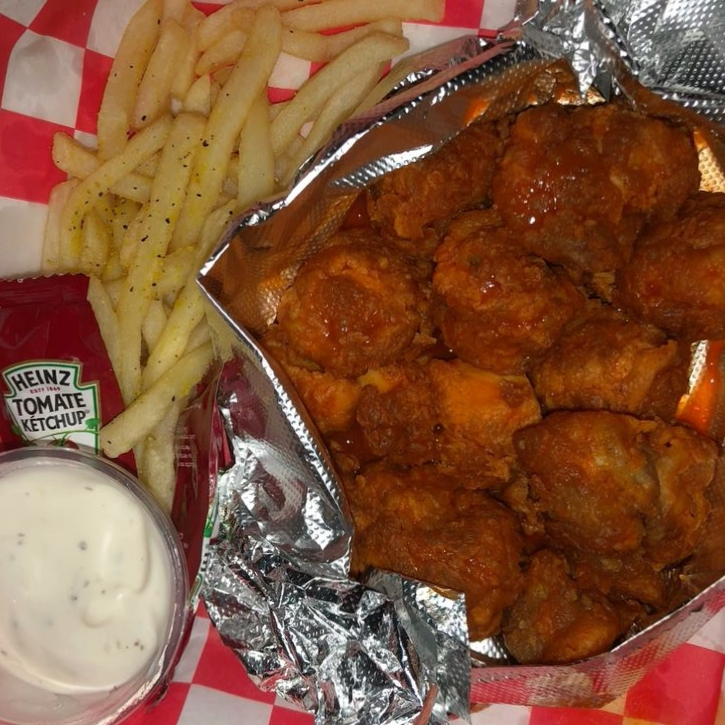 15pz grandes con sus salsas de elección,verdura y porción de papas fritas.🍟