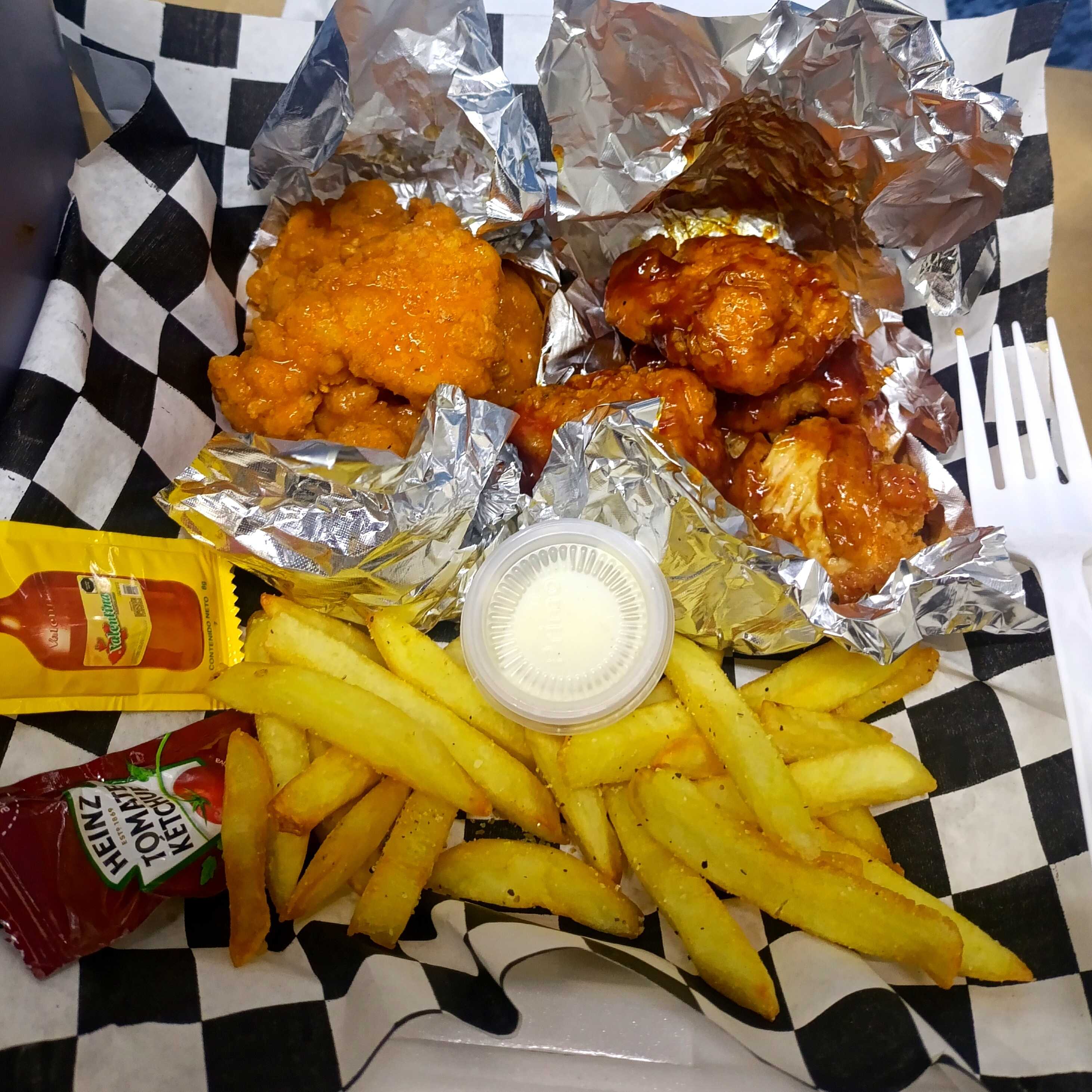 10pz grandes con sus salsas de elección,verdura y porción de papas fritas.🍟