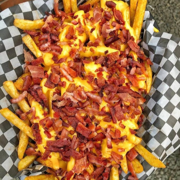 125g de Papas fritas , condimentadas,queso amarillo y tocino