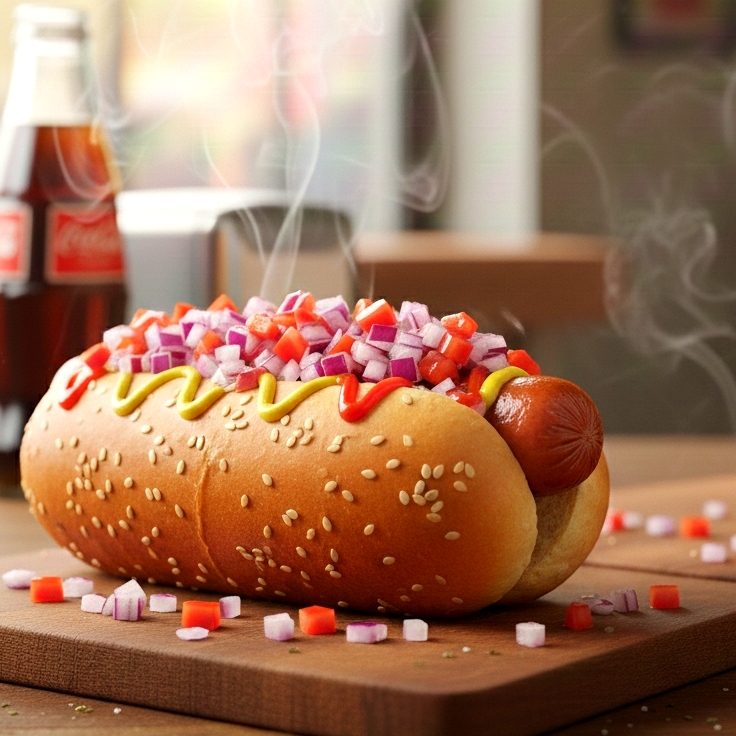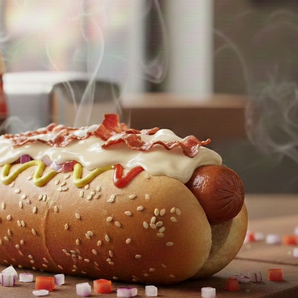 Pan clásico, salchicha, tocino, queso, jitomate y cebolla.!!