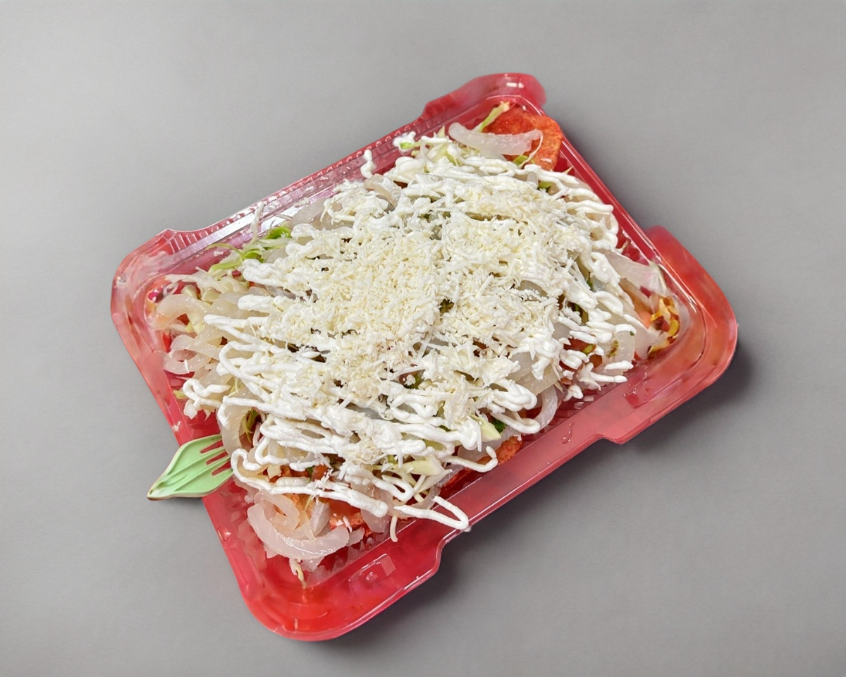 Sabrita de tu eleccion, mantequilla, crema, mayonesa, queso blanco, queso amarillo y chile en polvo