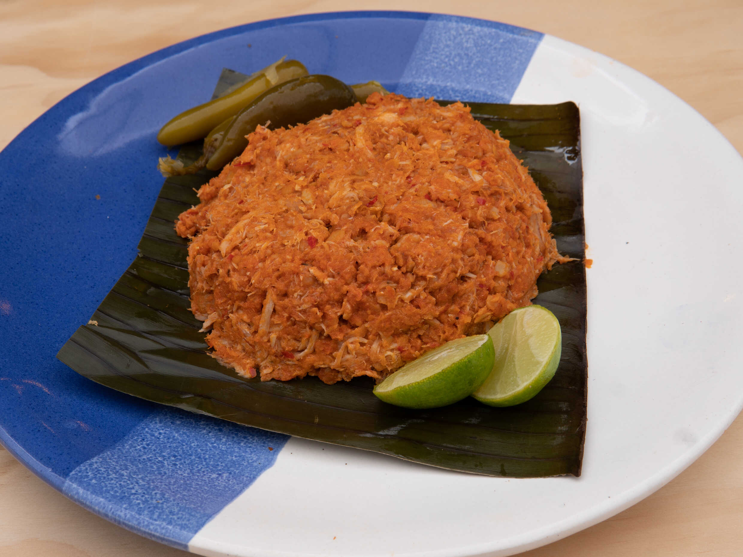 Acompañado con chiles en vinagre y limones.