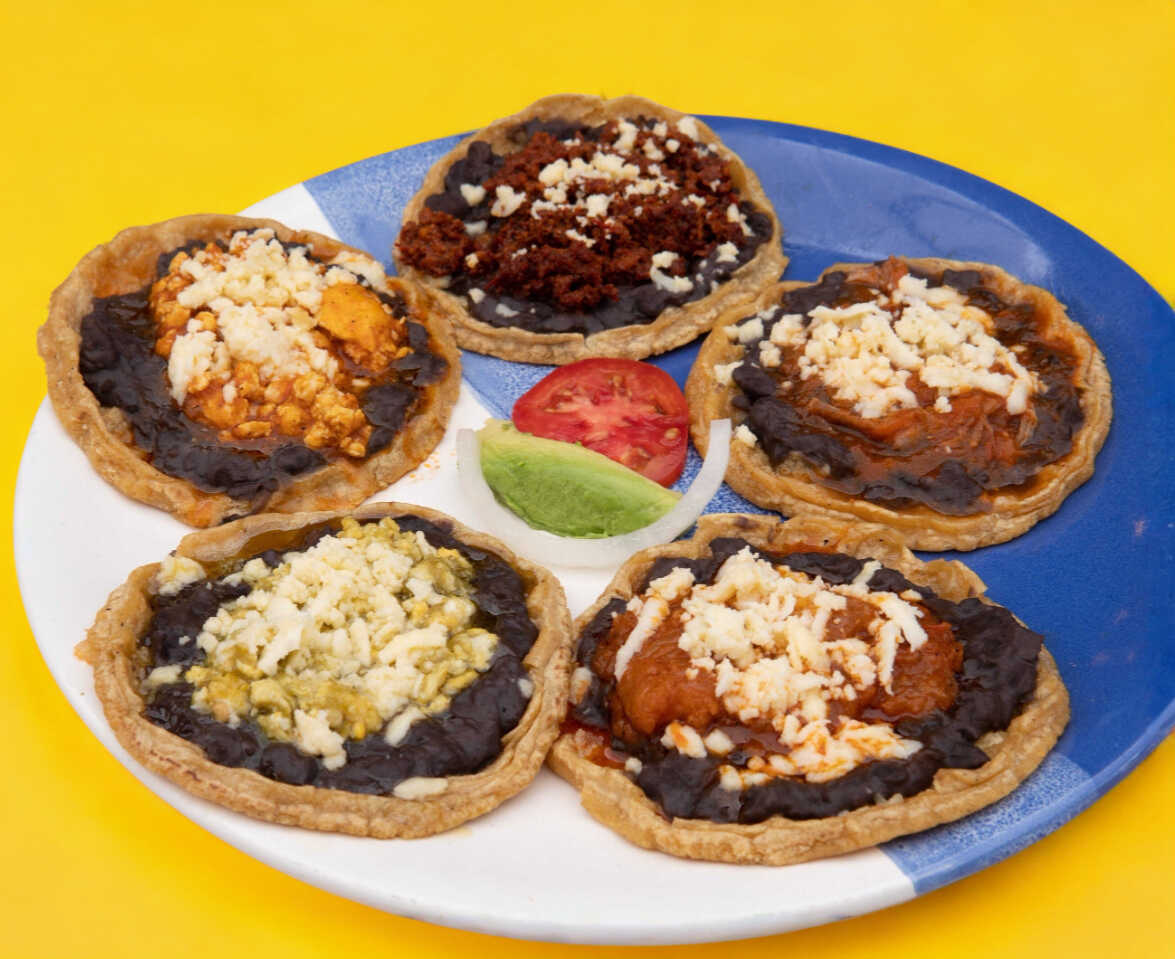 4 Piezas. Decoradas con: Lechuga, jitomate, cebolla, aguacate, crema, queso y frijoles.