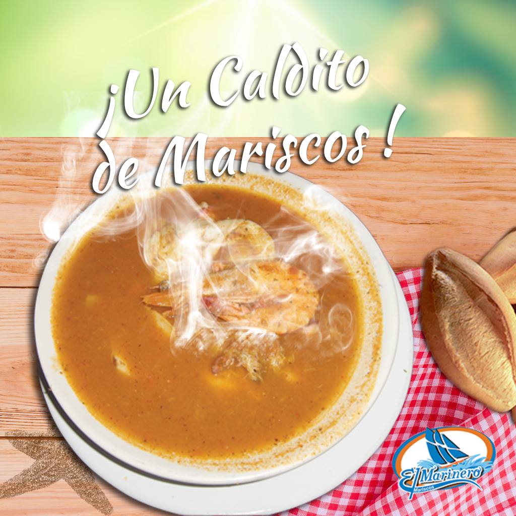 Sopa abundante con mezcla de mariscos.