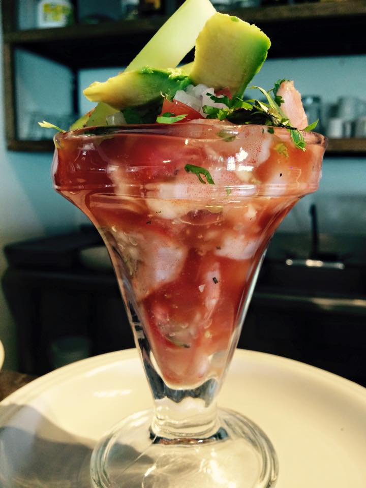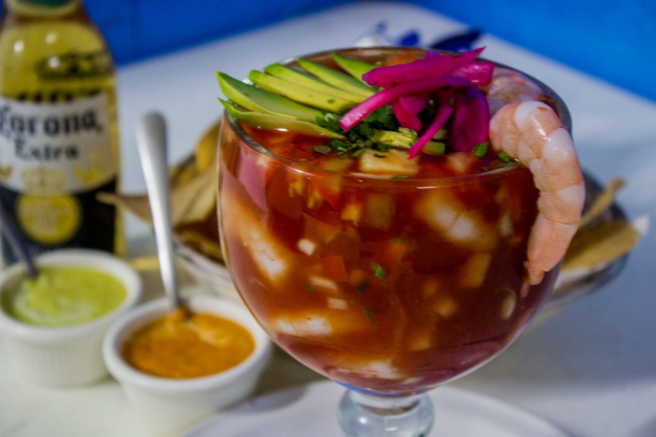 Camarones crudos marinados en limón, chile y pepino.