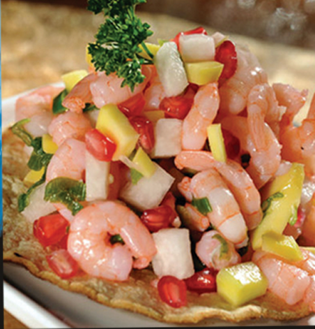 Tostada con camarón fresco marinado en cítricos.