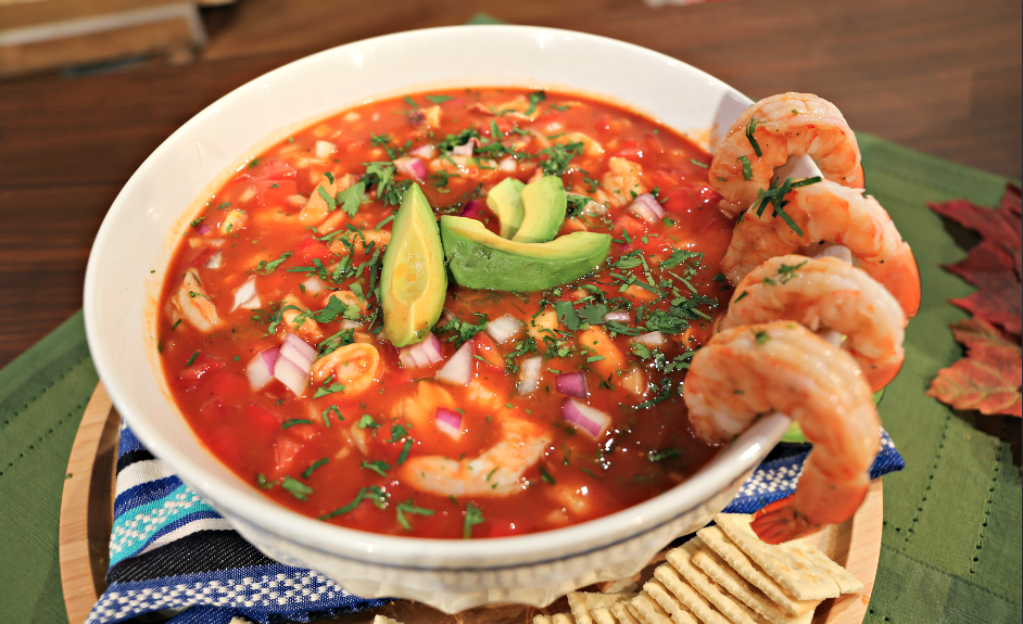 Camarón, pulpo y ceviche de pezcado estilo mazatlán