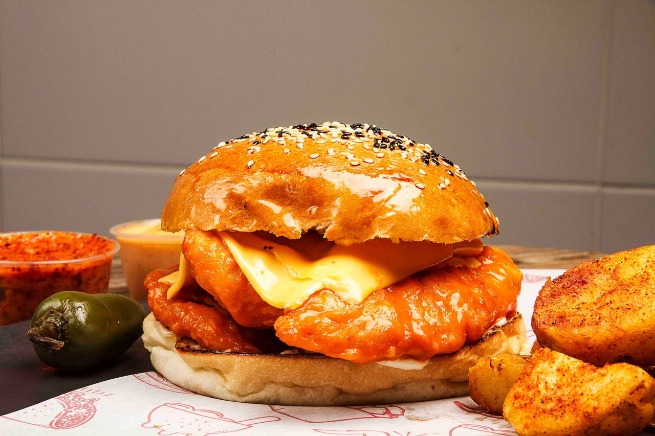 la de la casa, hamburguesa de boneless bbq o mango habanero acompañada de papas a la francesa
