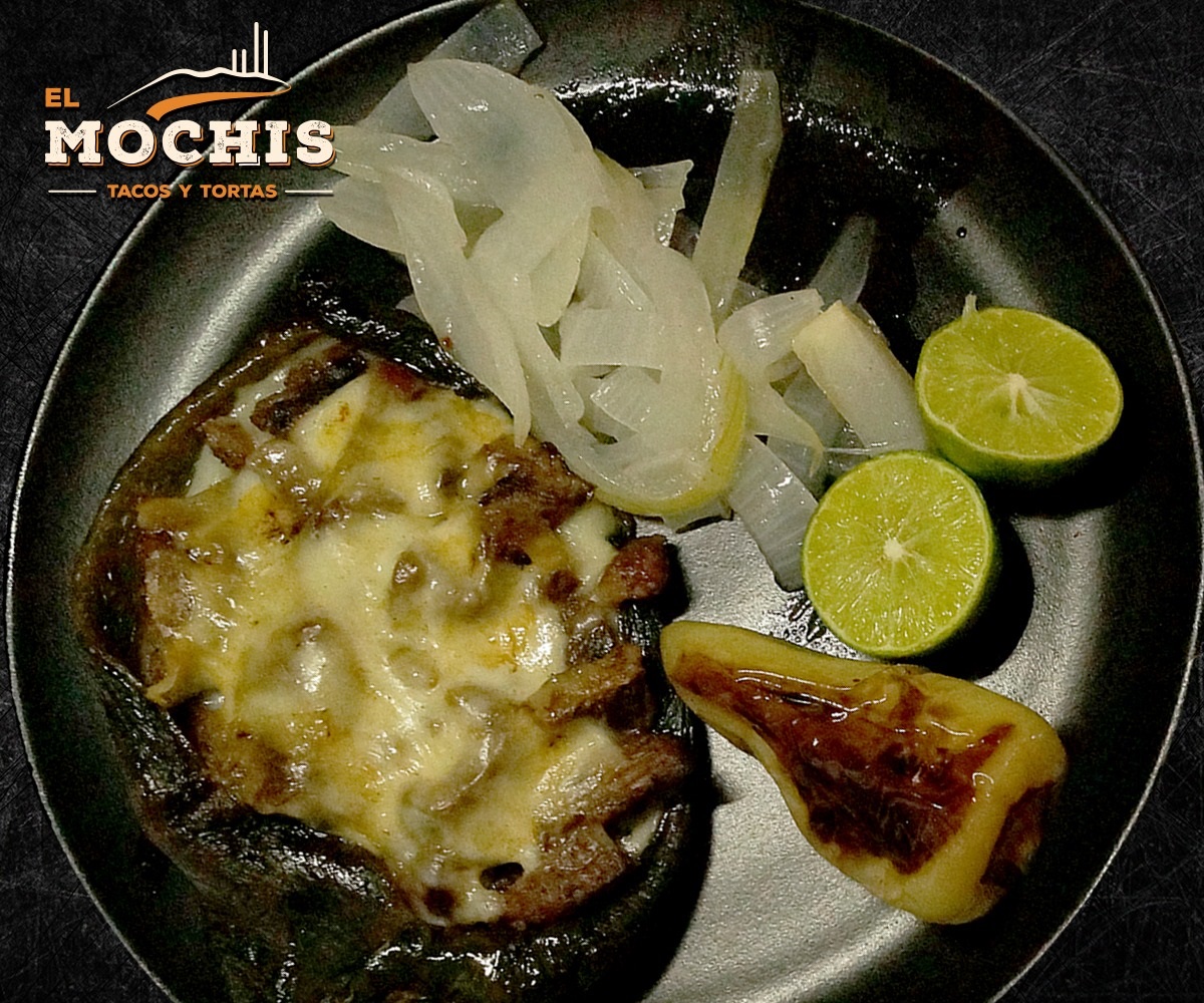 Penquita de nopal sobre tortilla, acompañada de queso fundido y carne asada.