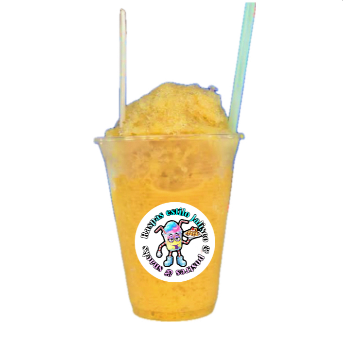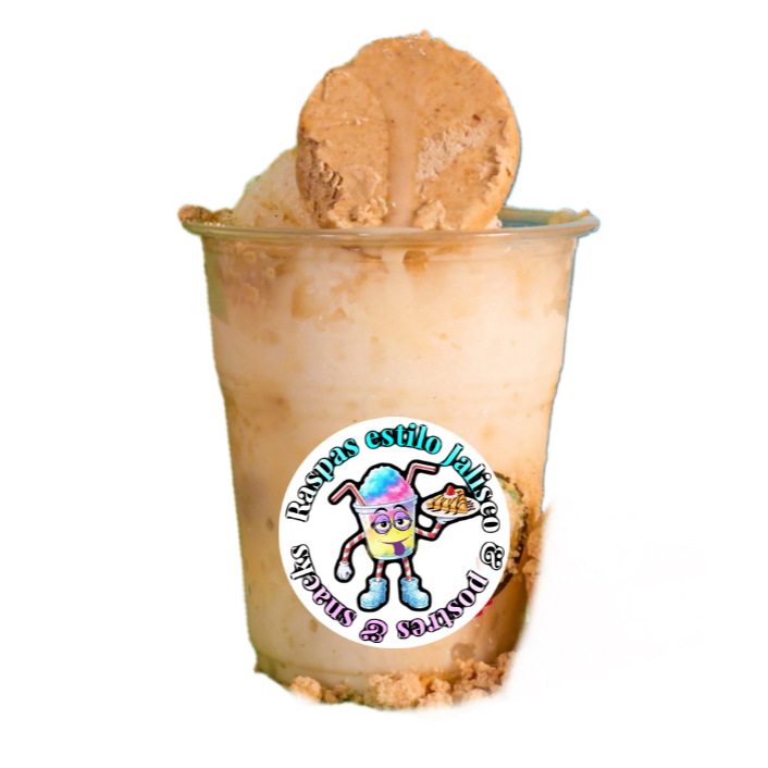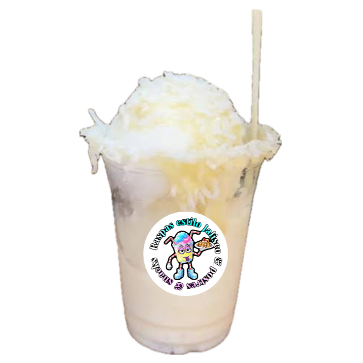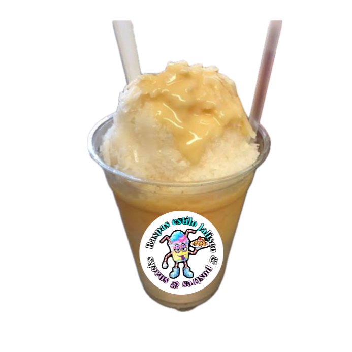 mezcla de almibar de sabor rompope y hielo rapado finamene