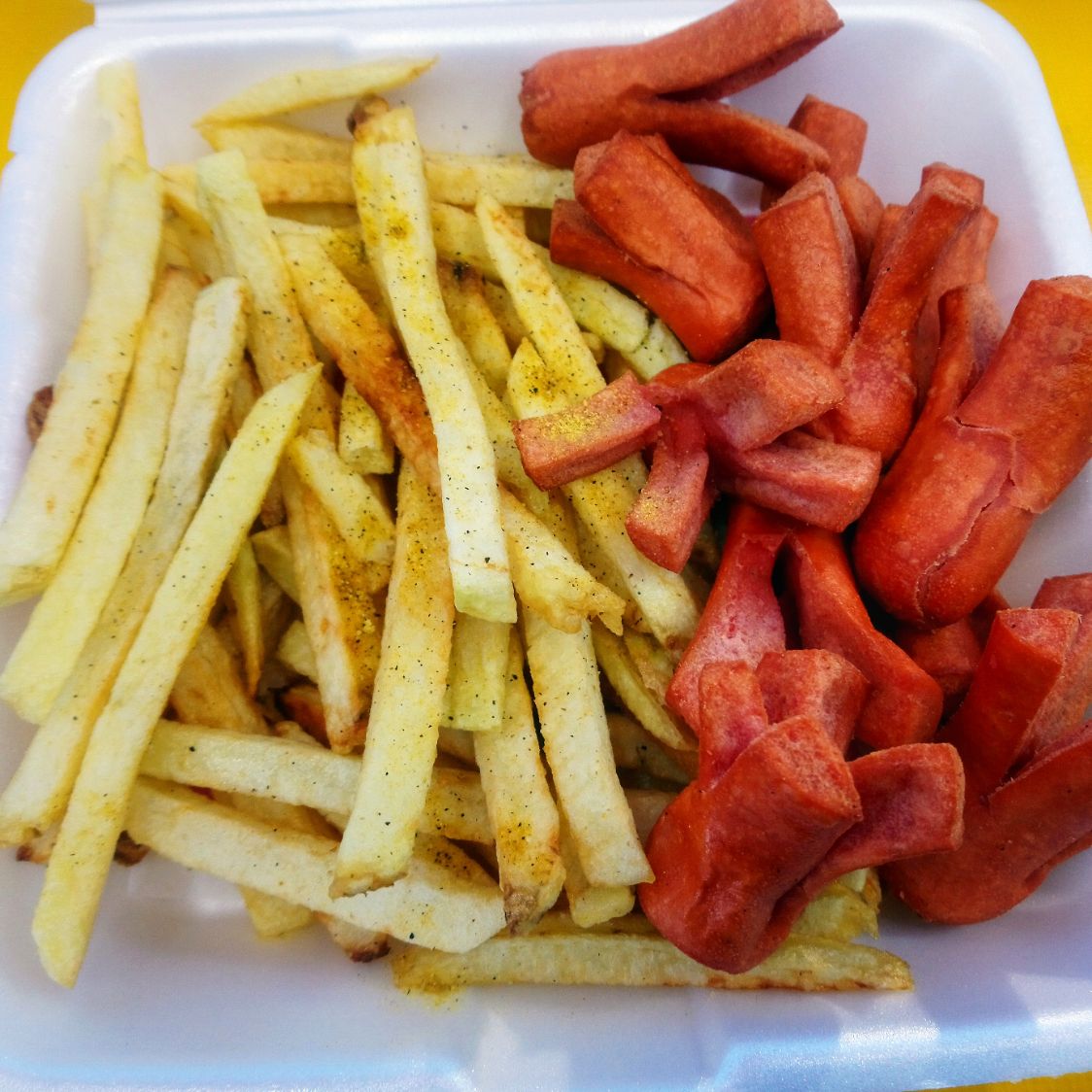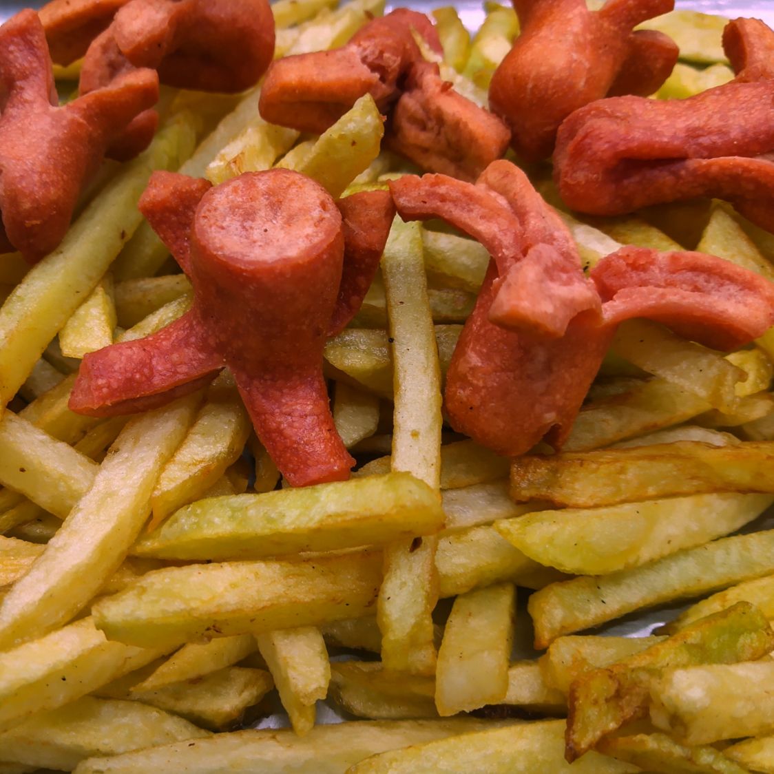 Salchipapas sazonadas en lemon pepper + Aderezos de tu elección.