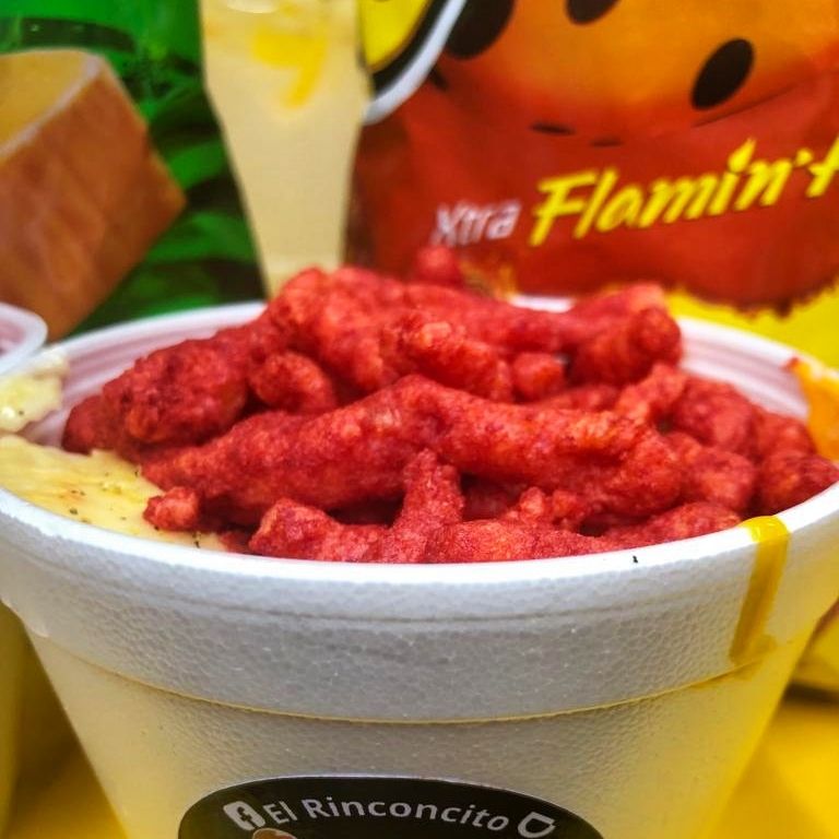 1 Chetos flaming hot + Vaso de medio litro que incluye elote y los aderezos de tu elección.