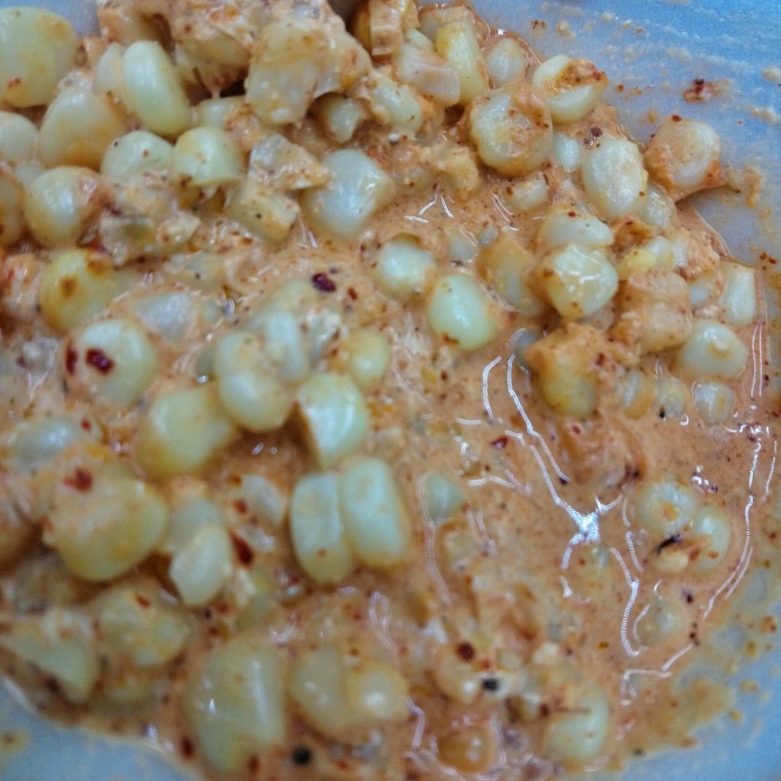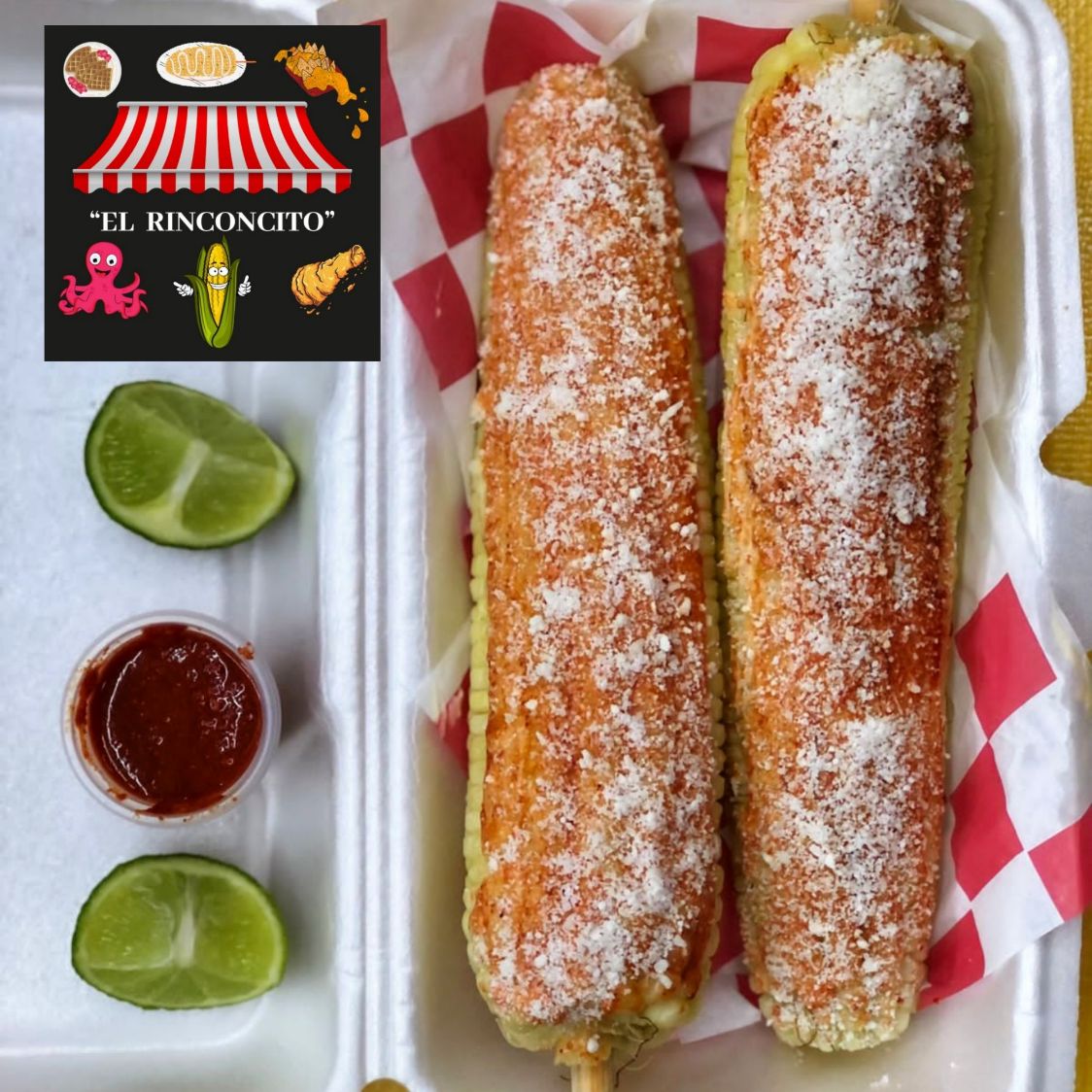 2 Elotes preparados Mayonesa (Mc Cormick) + Chile preparado (no pica) + Queso Blanco + Toque de lemon Pepper