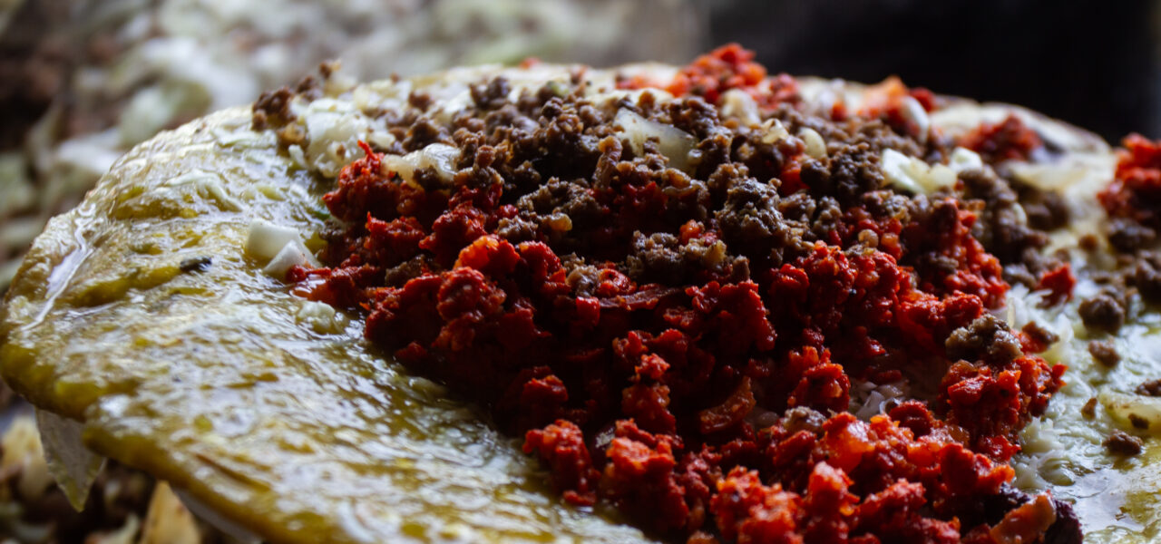 Gordita de maíz rellena de guisado.