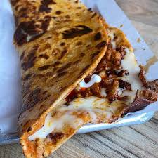 Quesadilla grande de maíz con queso y barbacoa.