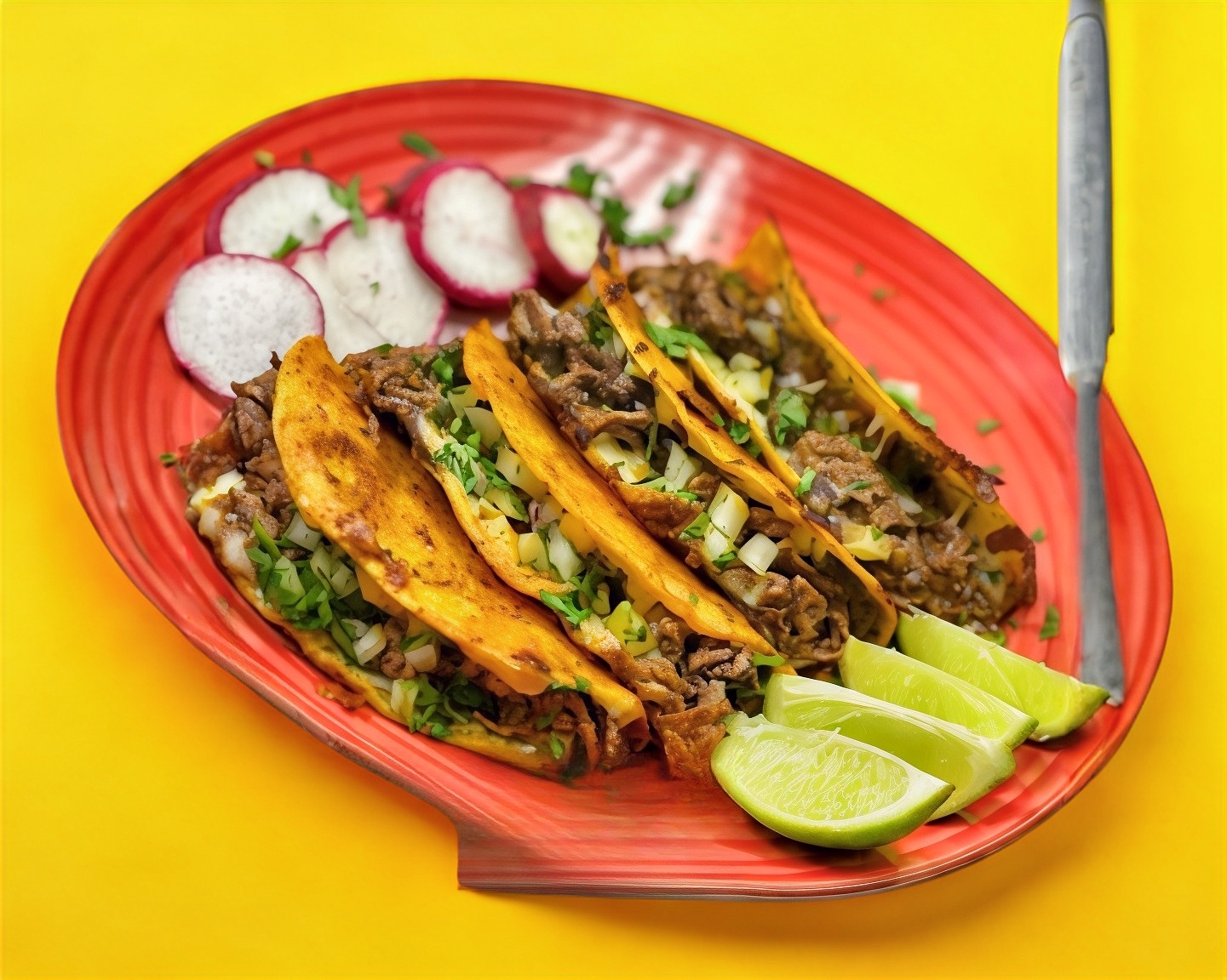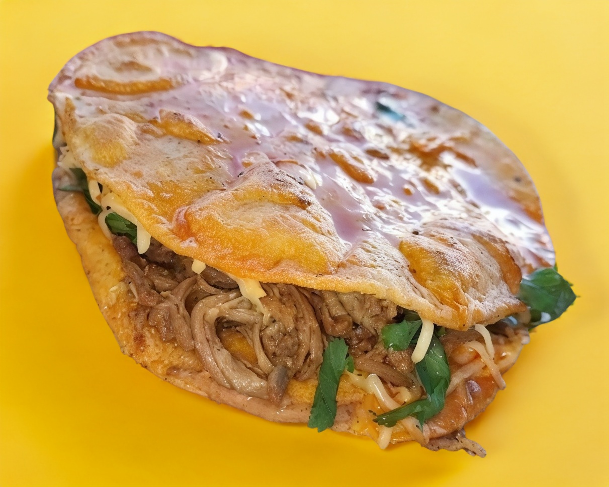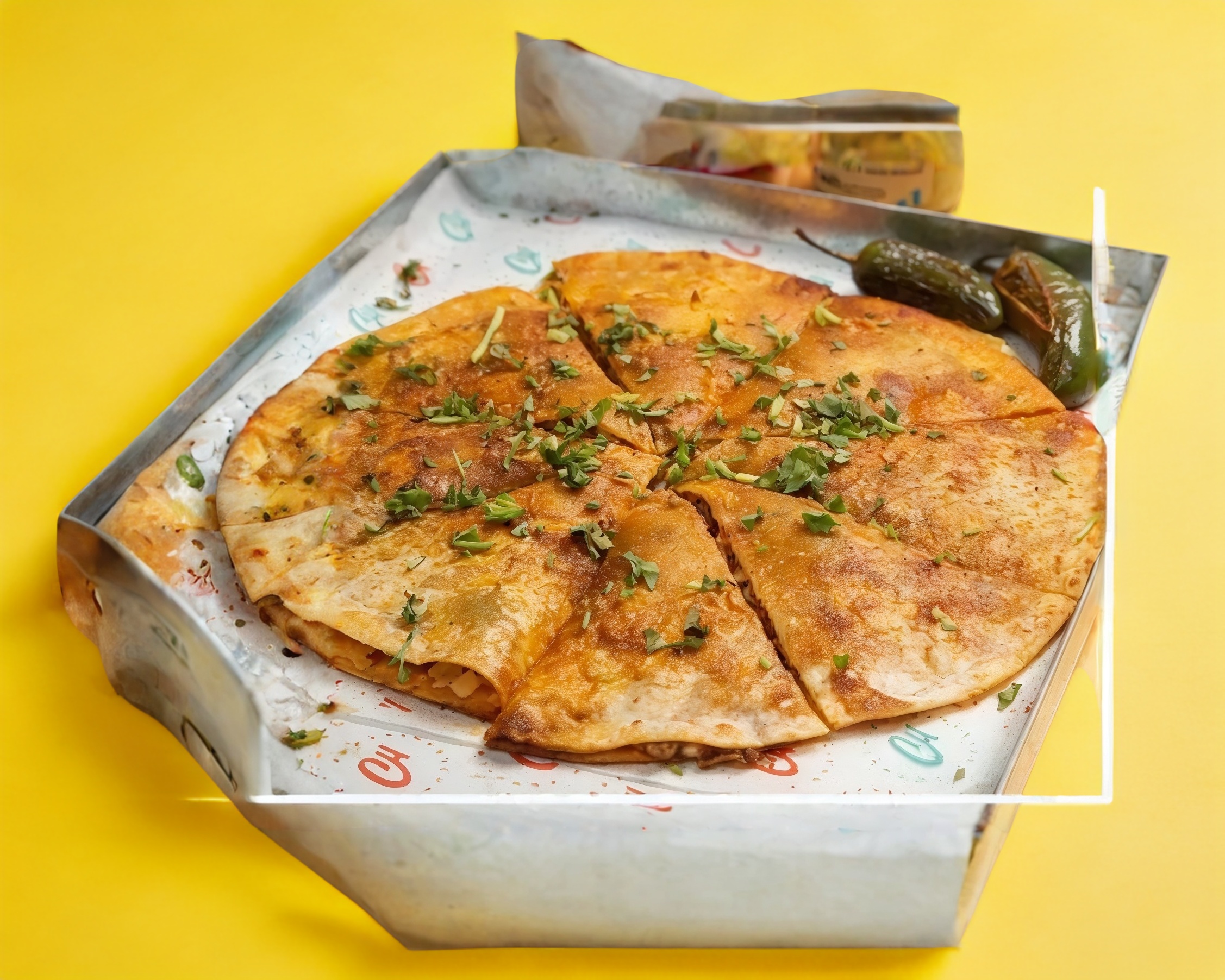 Quesabirria de maíz personal ( 130 gramos aprox) doble tortilla de maíz ,queso asadero , carne de birria ( 20 a 25 gr)cebolla ,limón ,cilantro aparte