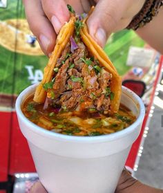 Consomé personal con carne res 90 gr en vaso de 12 Oz, cilantro y limón.