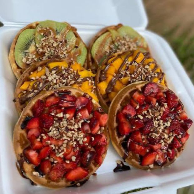 4 Mini Waffles acompañado de fruta, topping y untables
