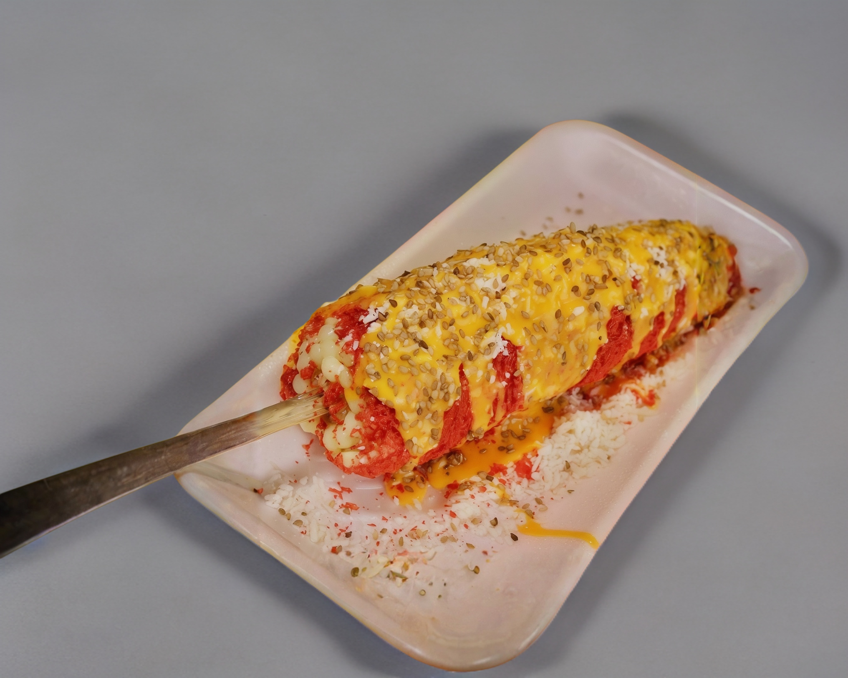 Elote entero a elección, empanizado con doritos o cheetos flaming.