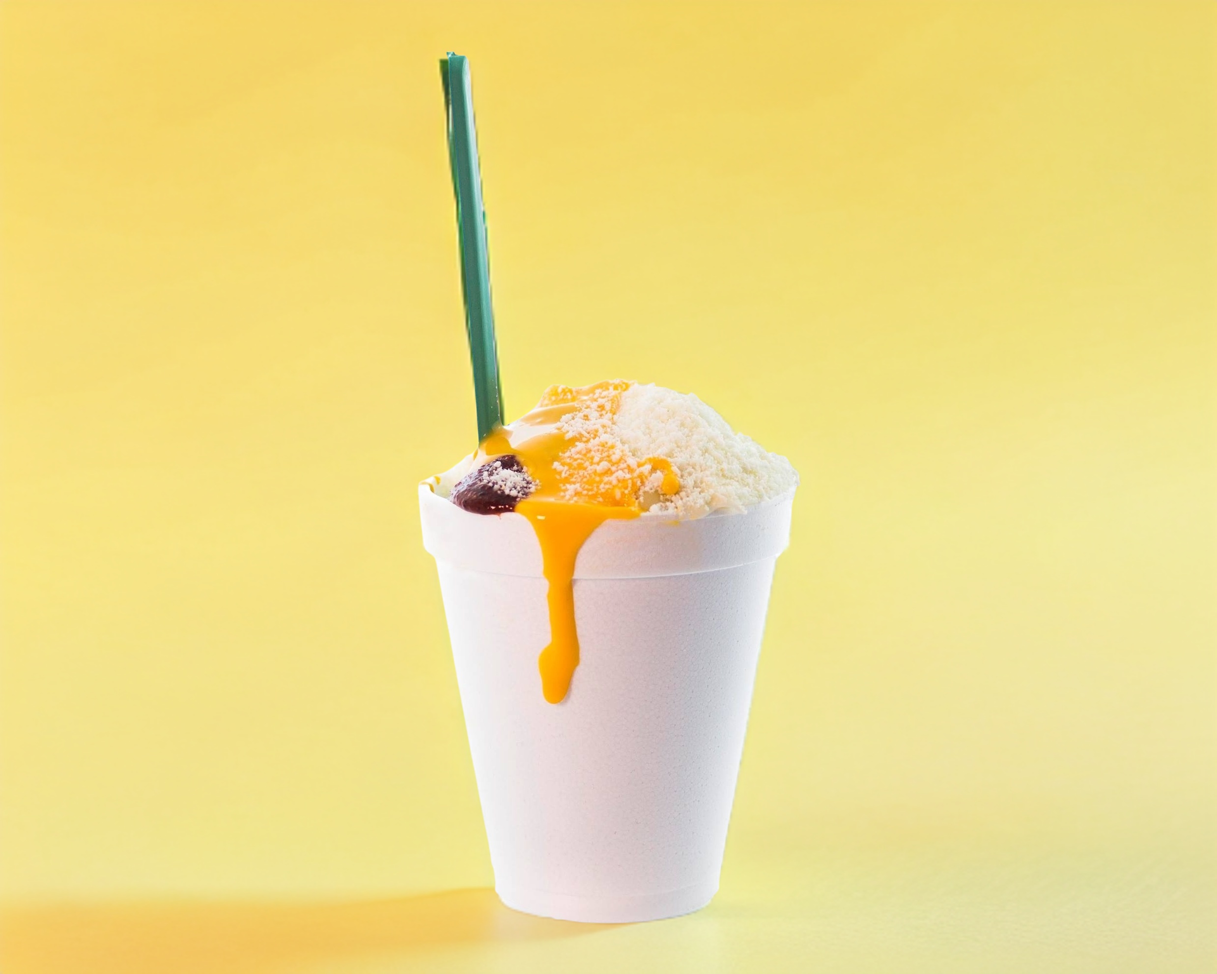 Esquite de sabor a elegir,limon,crema,mayonesa,queso blanco,queso amarillo,salsa que no pica (o) pica y pmienta de limon al gusto.
