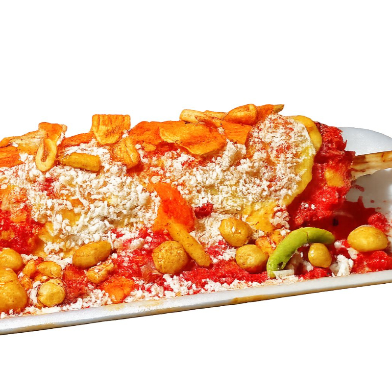 Charola con tostitos, maruchan, esquite, queso amarillo, crema, mayonesa, chile en polvo, y 3 toppings