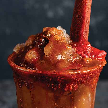 Jarabe de tamarindo, Tajín, polvo miguelito, chamoy y limón.