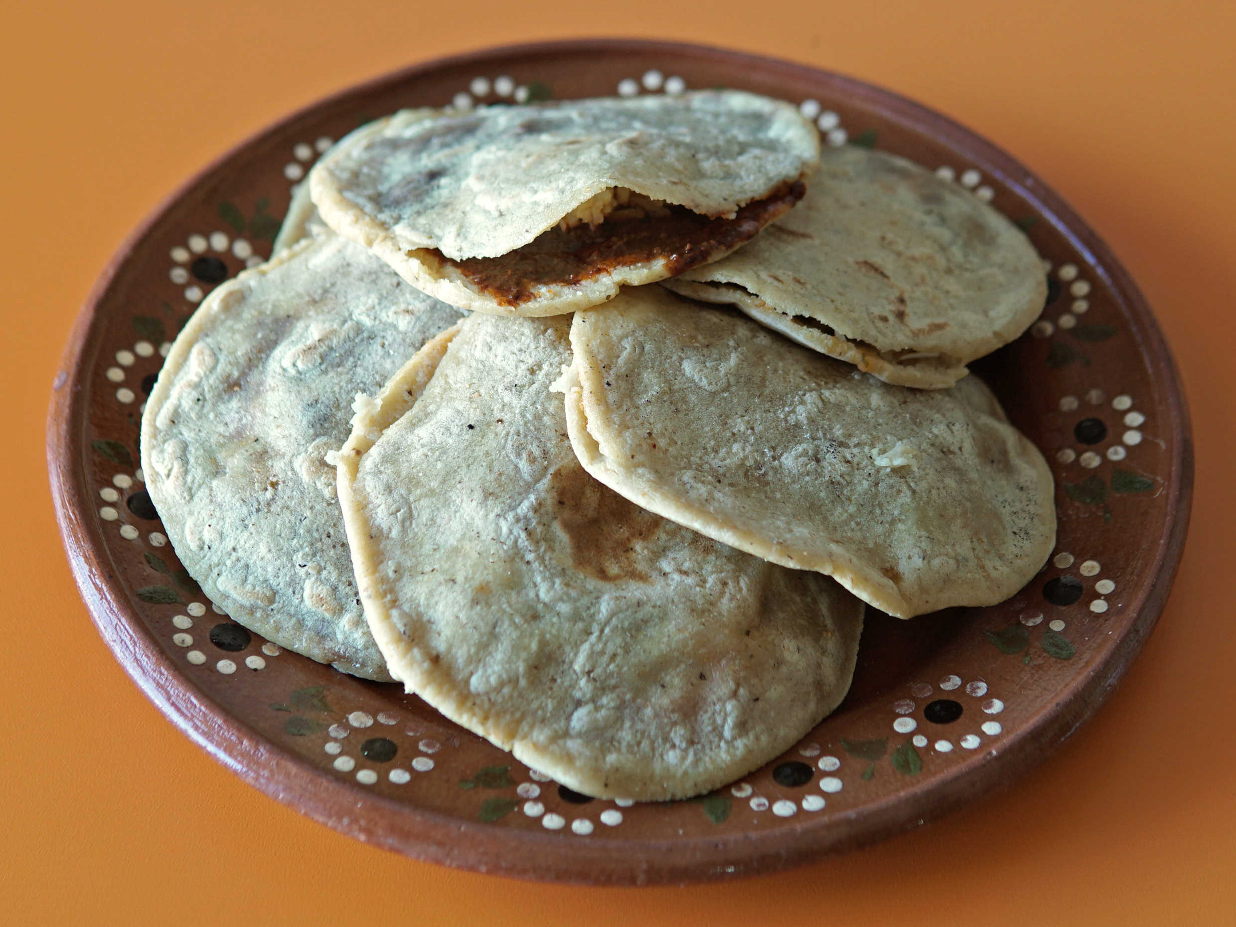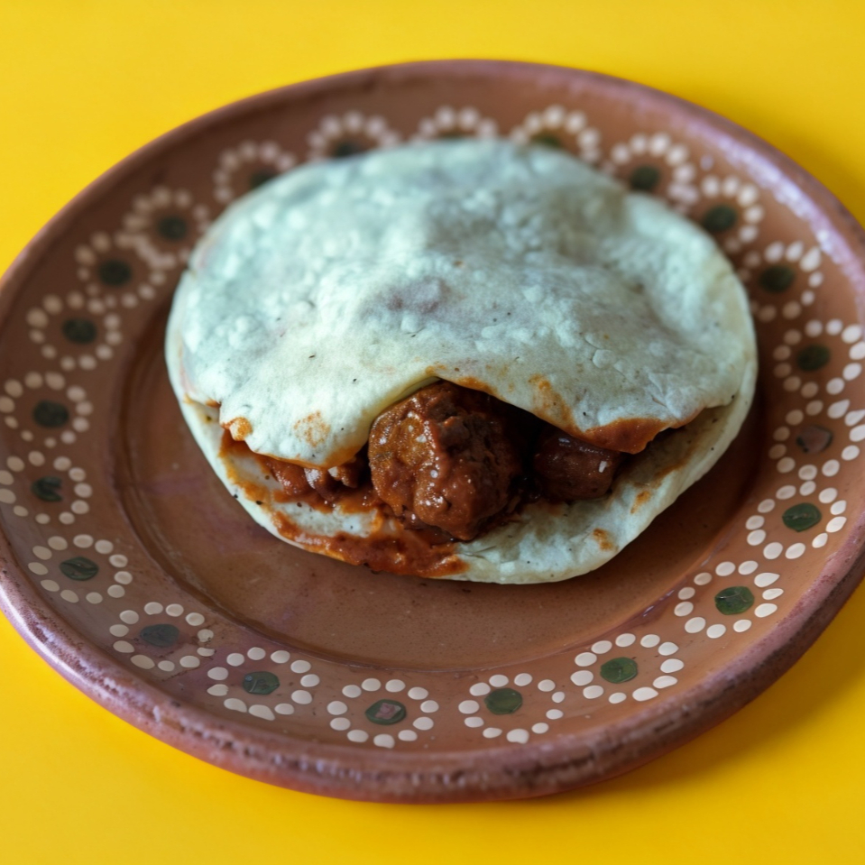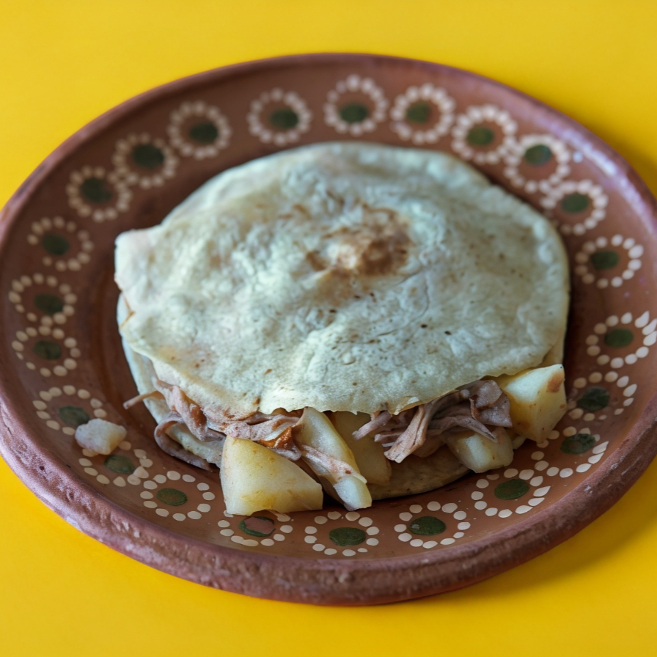 tortilla roja rellena de 3 quesos y doblada a la mitad