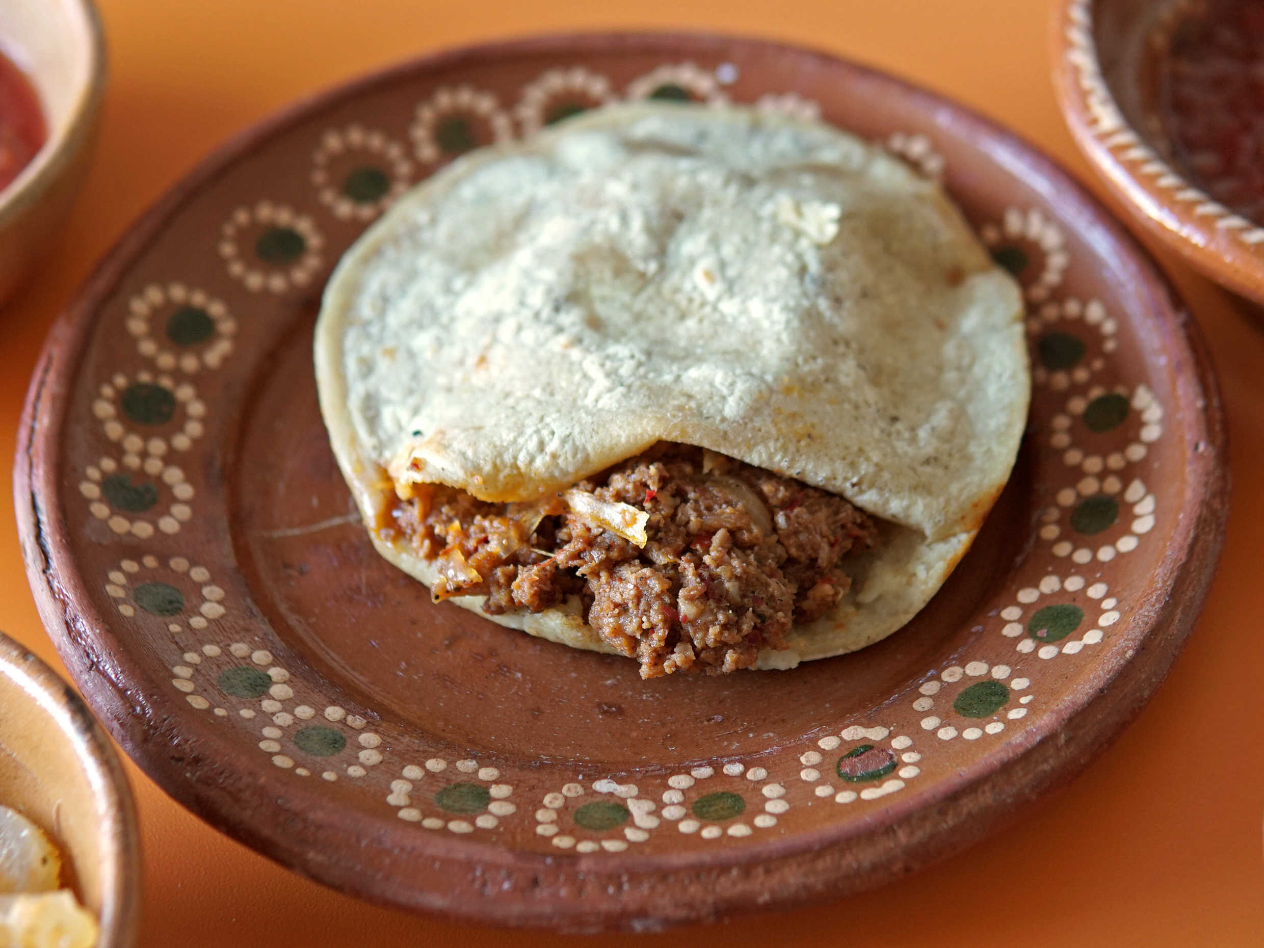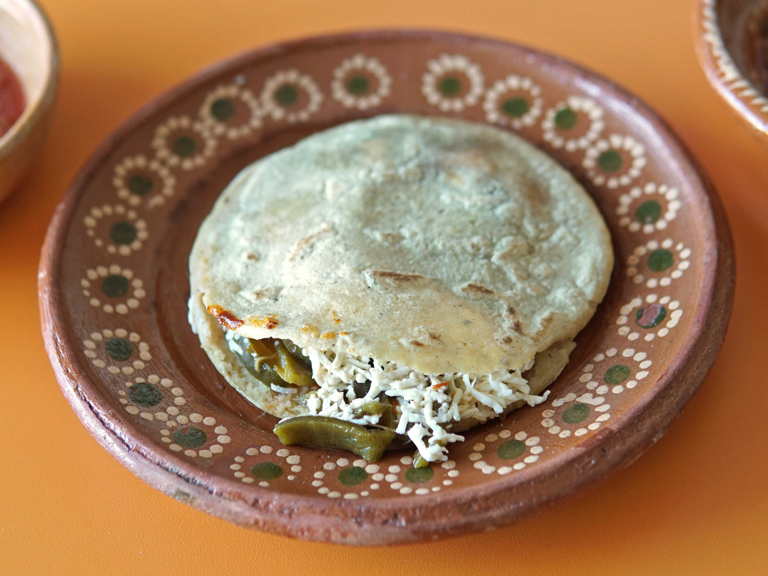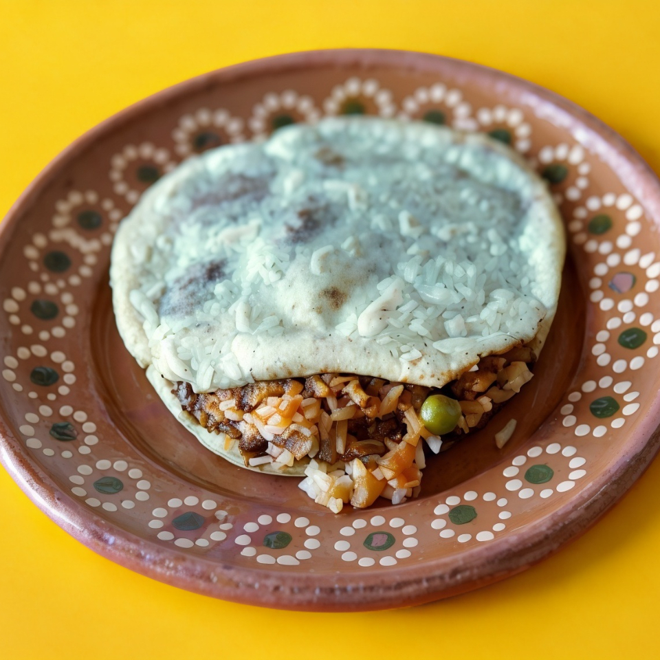 tortilla roja rellena de 3 quesos y doblada a la mitad