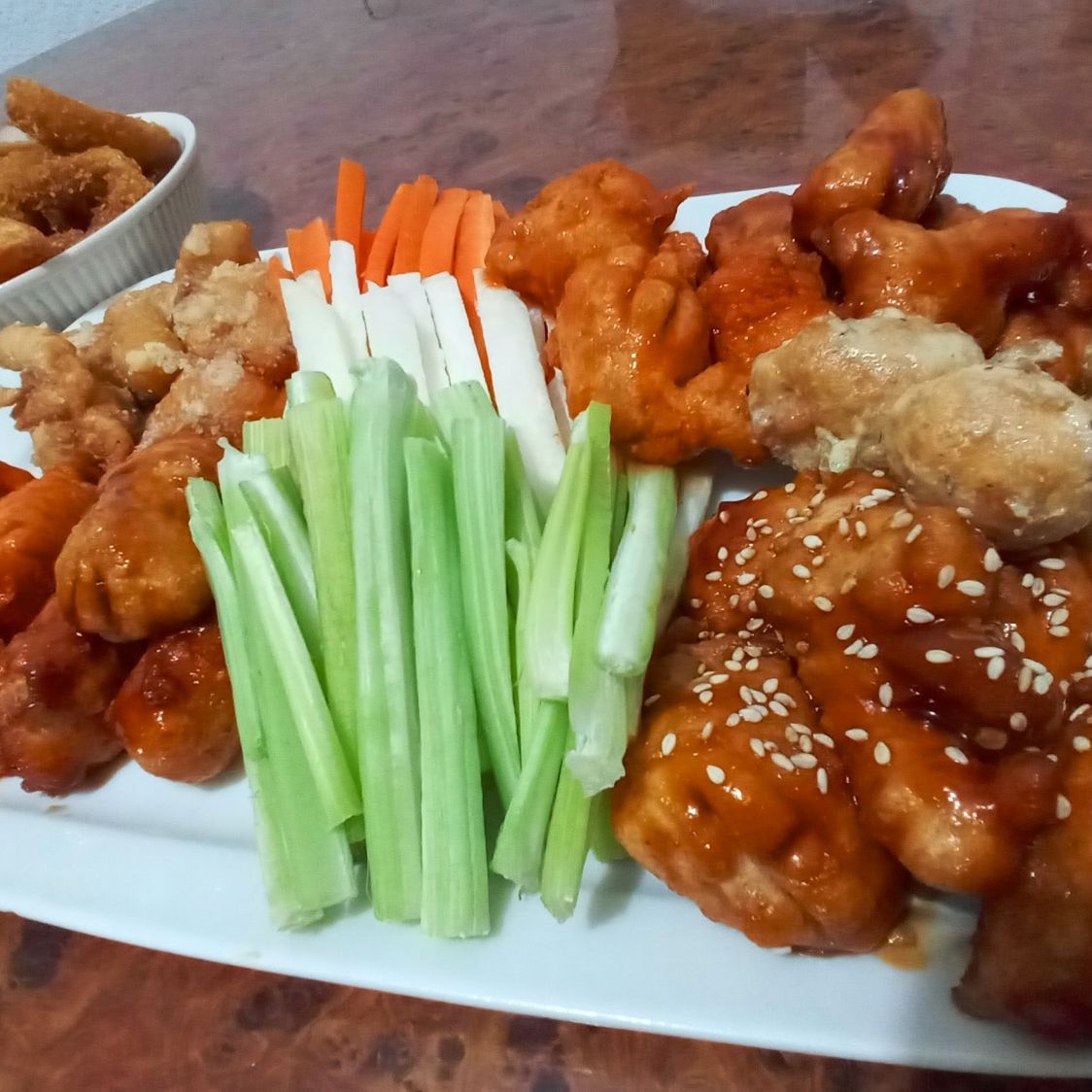 Por dentro delicioso queso gouda, pollo y zanahoria, por fuera bañado con salsa búfalo, acompañado de aderezo y soya.