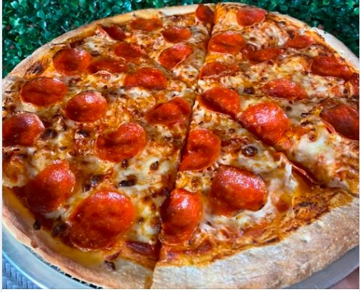 8 Rebanadas, pizza grande con mozzarella y pepperoni.