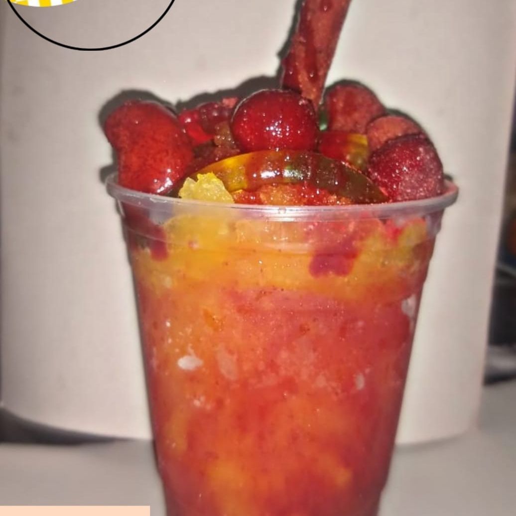Delicioso sabor a Bubulubu, decorado con crema batida, granillo turín de colores, un barquillo y más bubulubu, servido en un vaso de 16 oz con tapa domo.