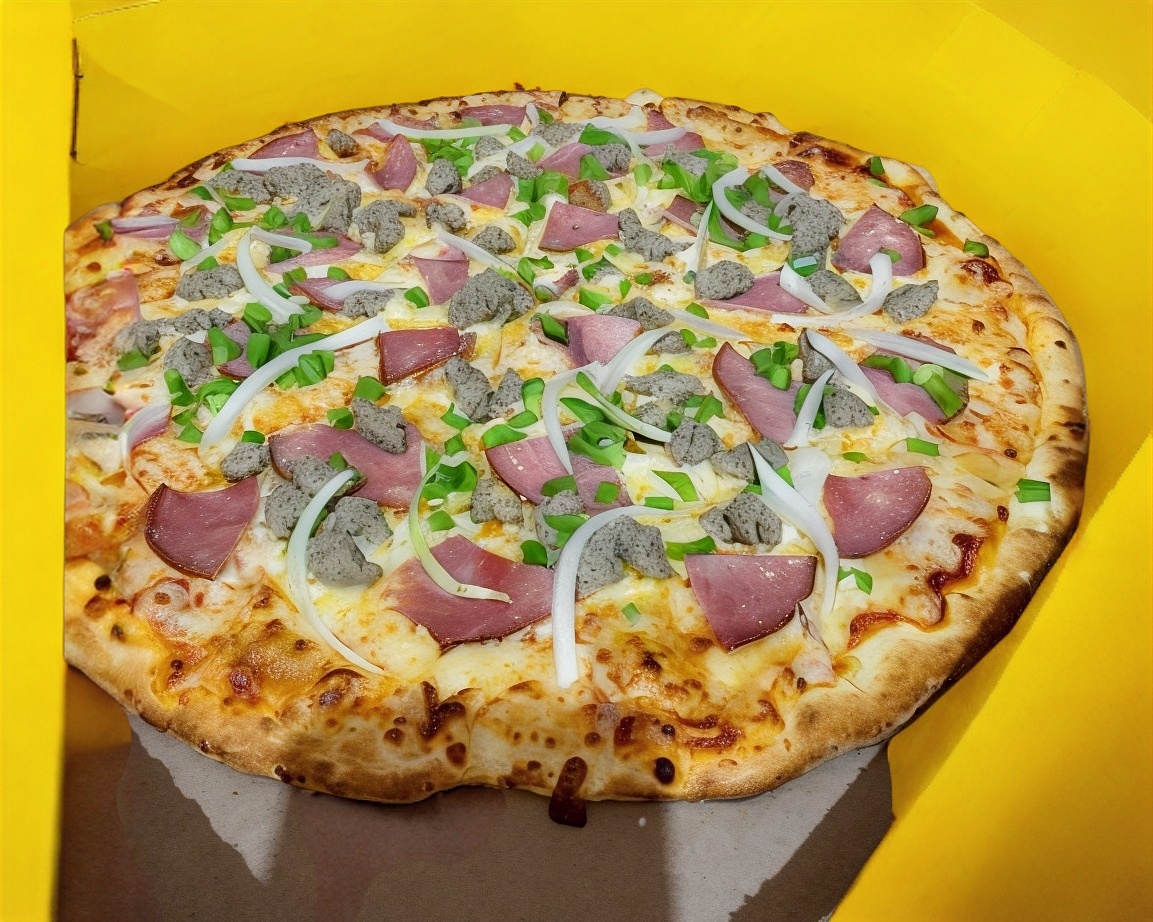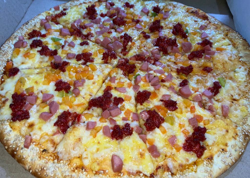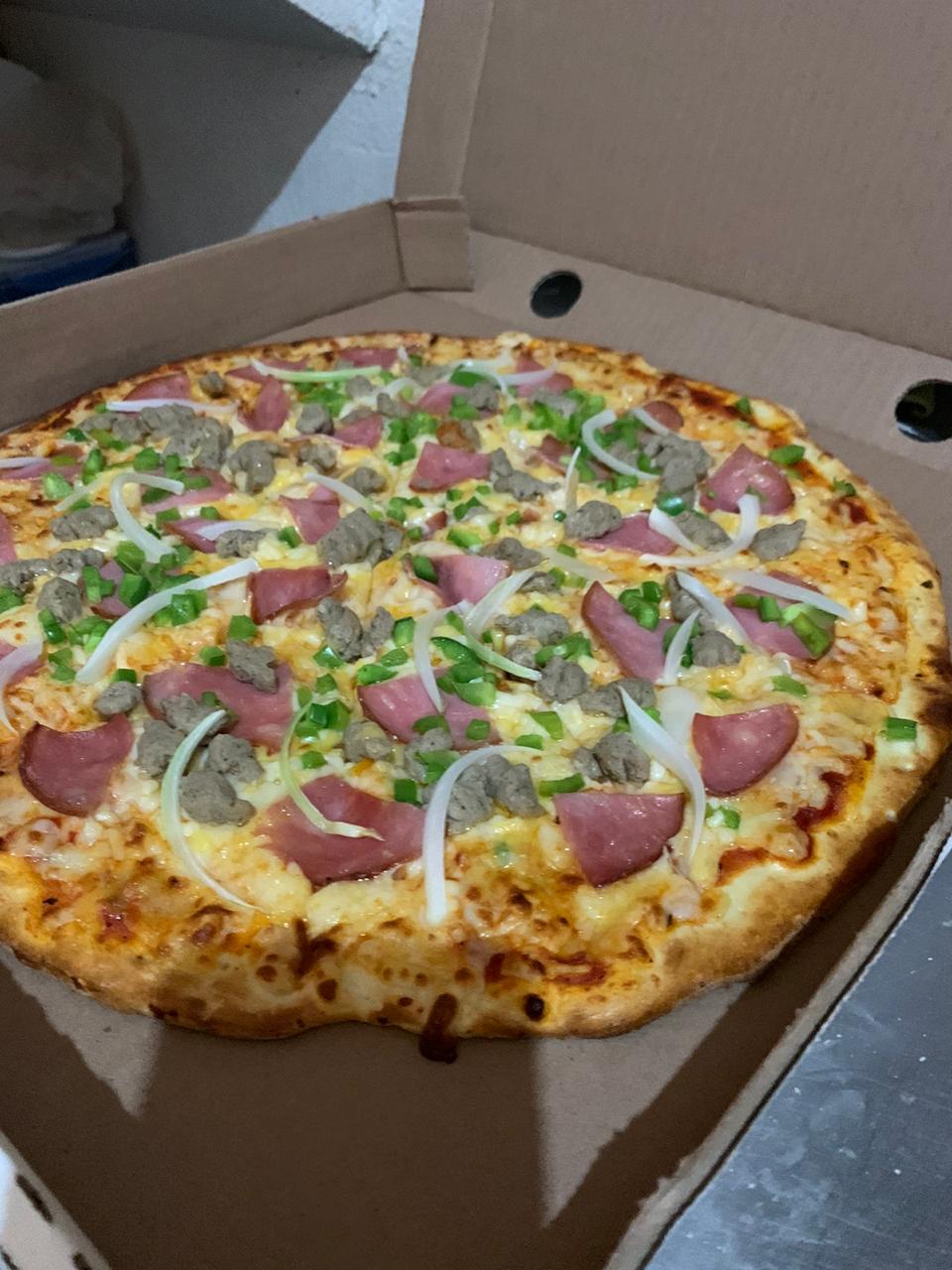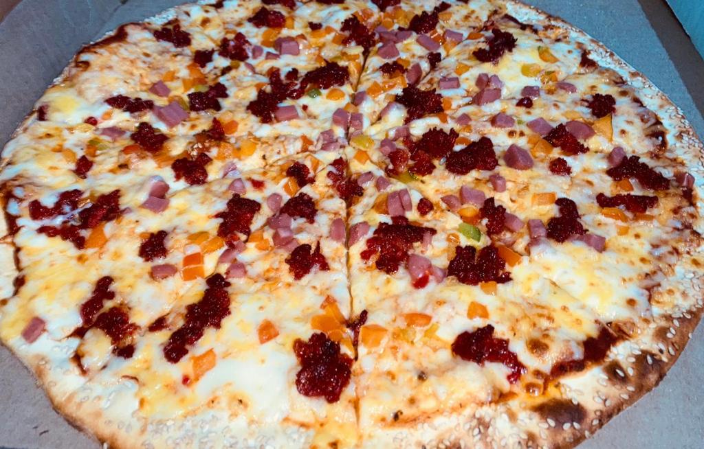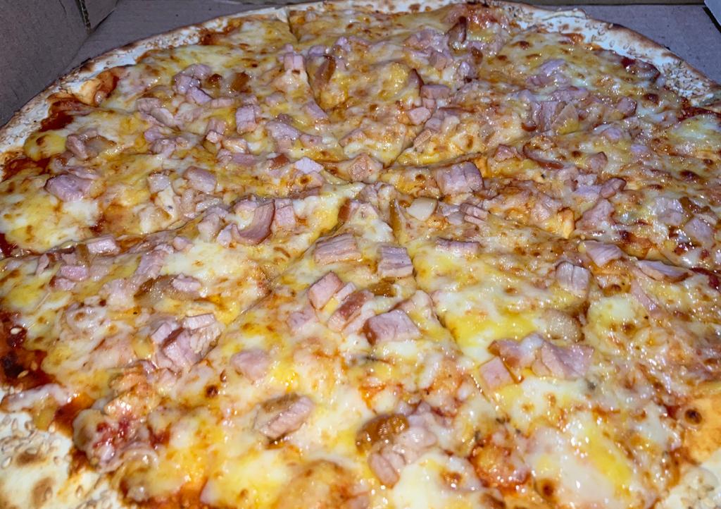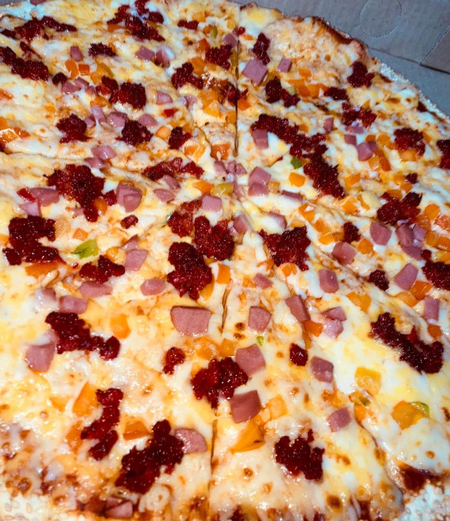 Pizza de 1 ingrediente a elegir como (Pepperoni o hawaiana y mucho mas) con 10 rebanadas acompañada de chimichurri