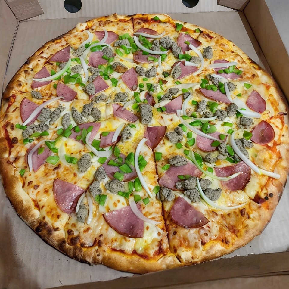Pepperoni, italiano, chorizo, tocino, salami, champiñones y un toque de queso parmesano