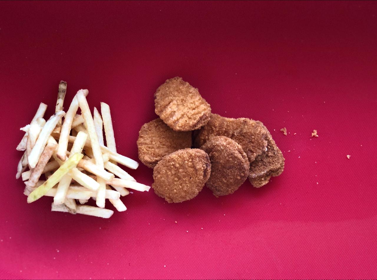 8 Piezas de nuggets con papas a la francesa.