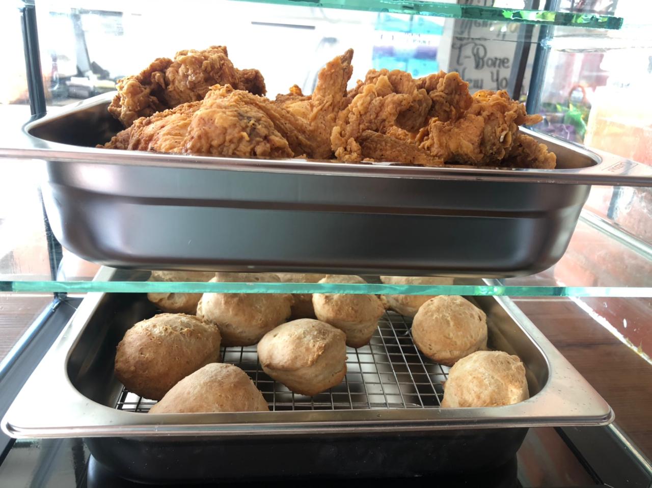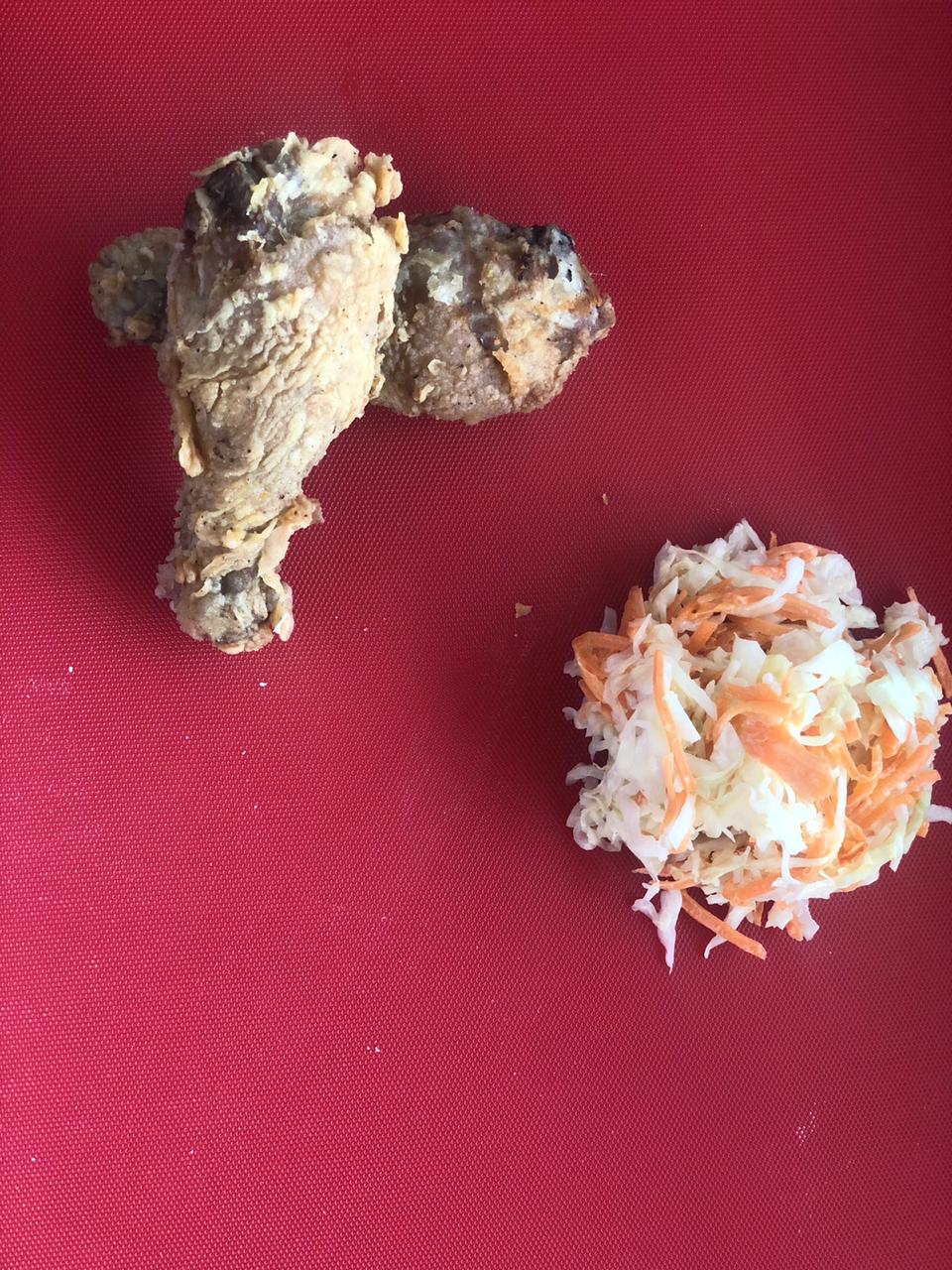 2 Piezas de pollo frito, 2 panes, 1 complemento y 1 refresco.