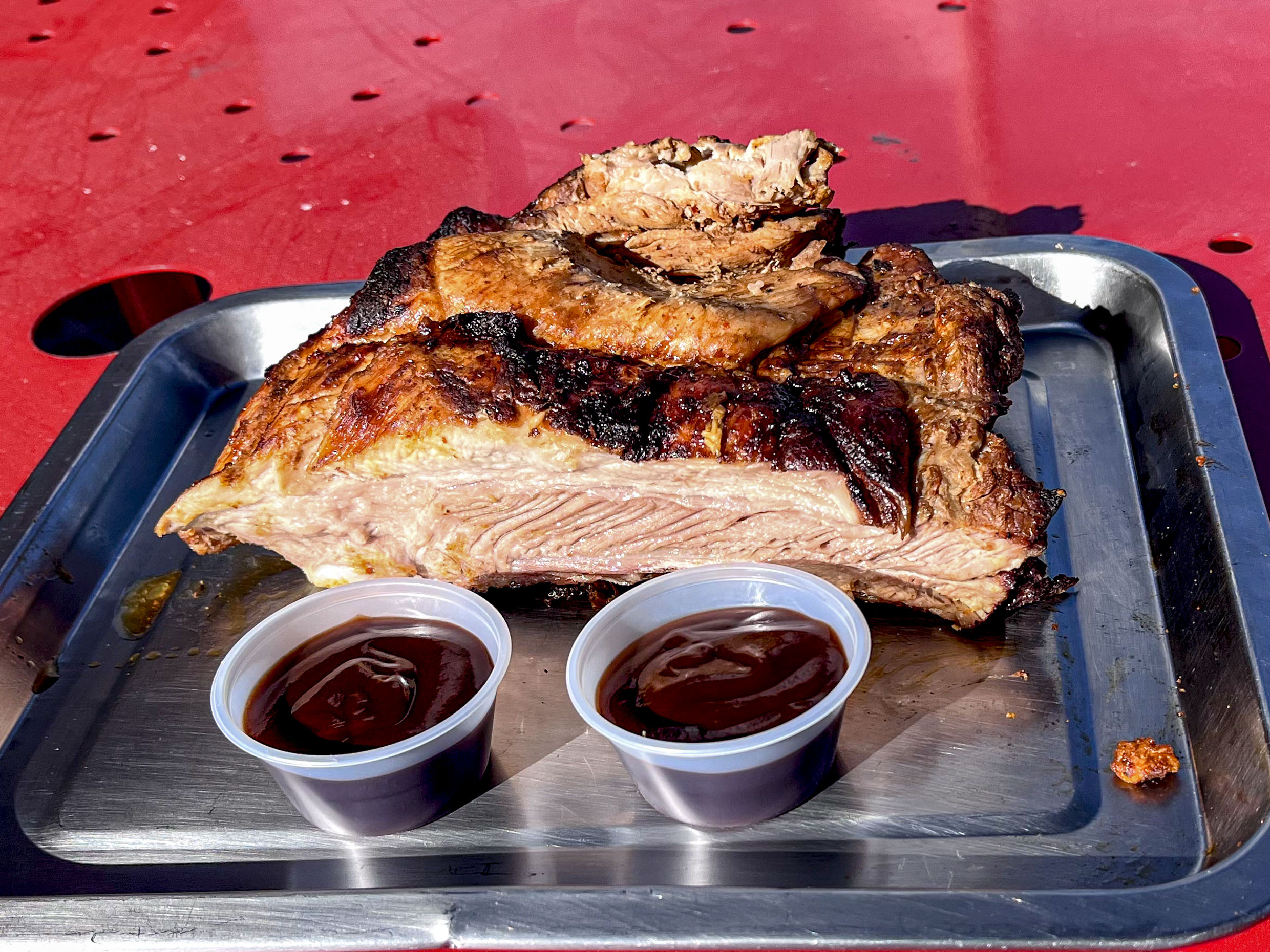 Deliciosa media costilla de cerdo aderezada con BBQ.