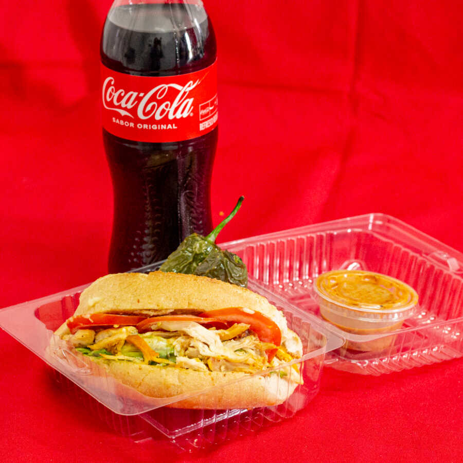 1 deliciosa torta de pollo + 1 refresco de 600 ml.