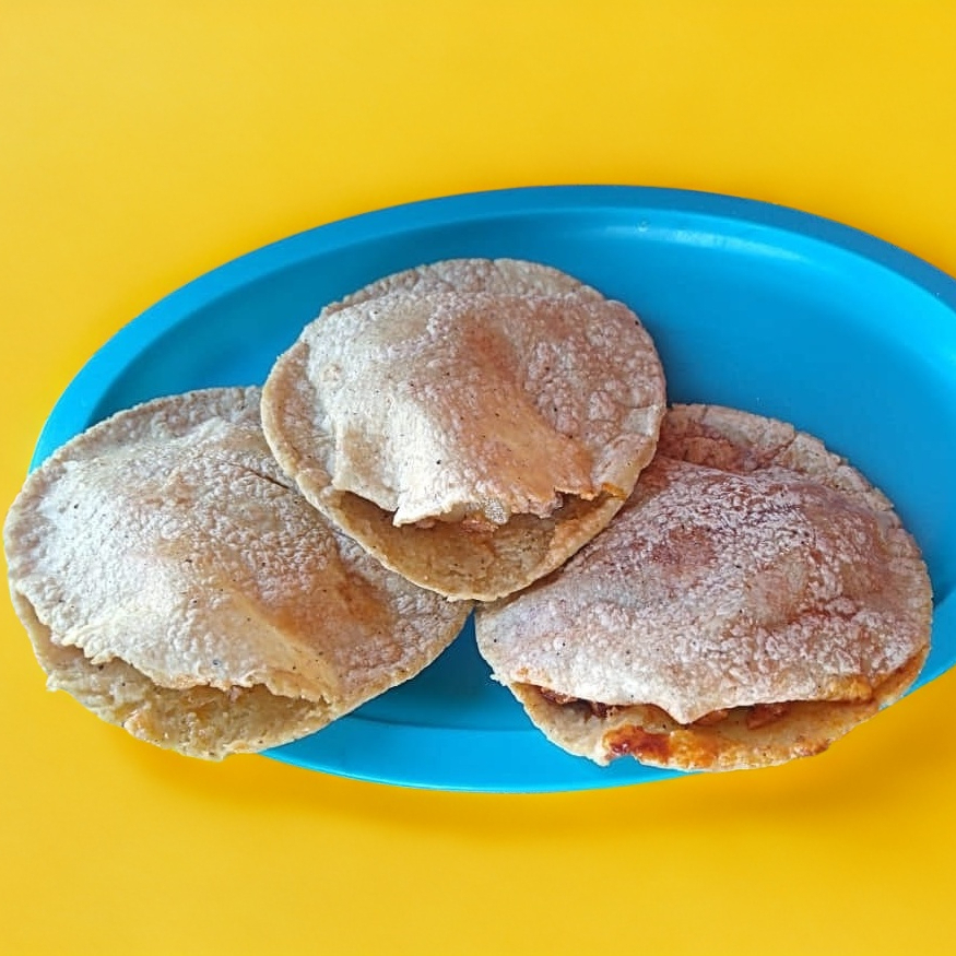 1 Gordita de maíz rellena con cualquier guiso, (guiso al gusto del cliente).