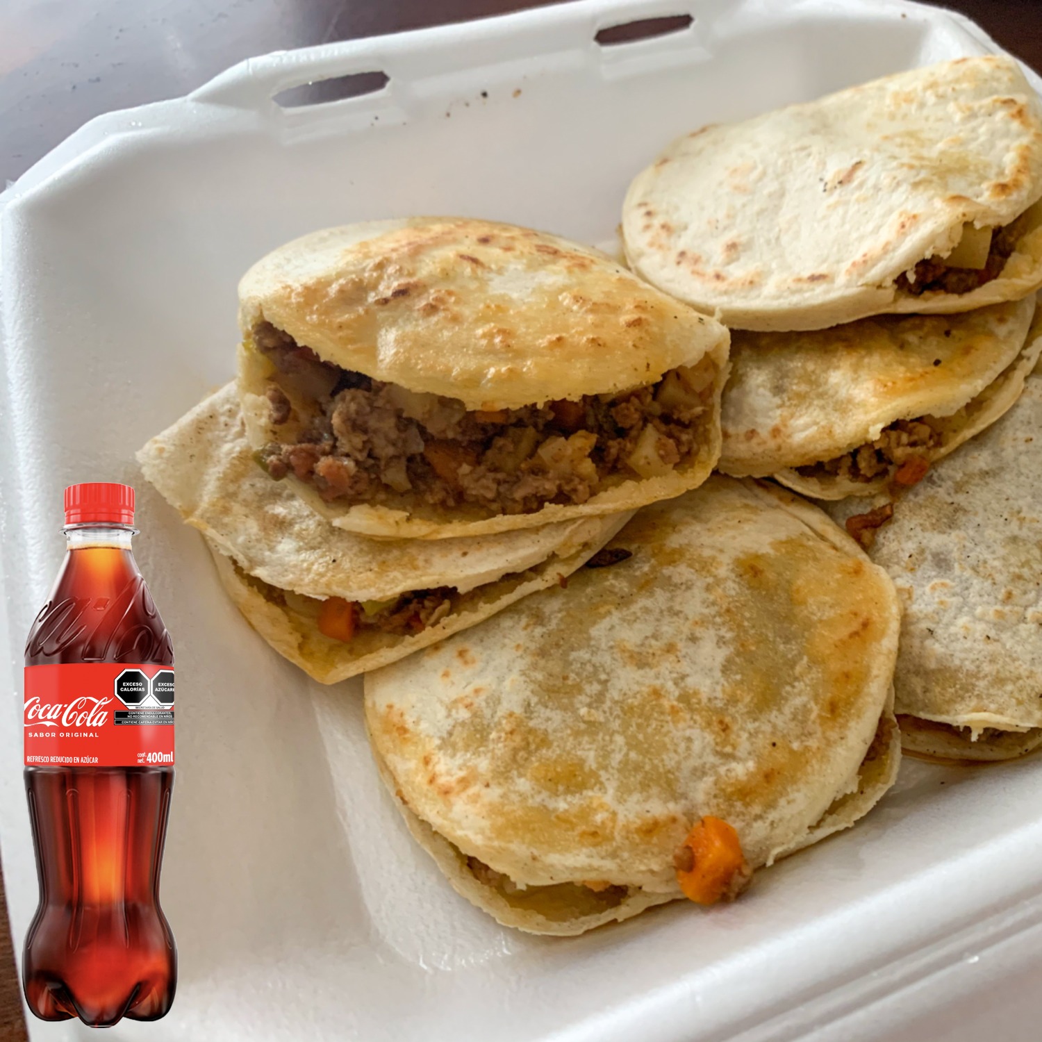 Combo-Coca Cola + 5 Gorditas + 1 Coca ColA