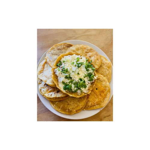 Gordita de maíz hecha a mano, bien doradita por fuera y suave por dentro, rellena al gusto,Se sirve recién hecha, bien caliente, con el sabor tradicional y casero del maíz y su guiso, ideal para quitar el antojo.