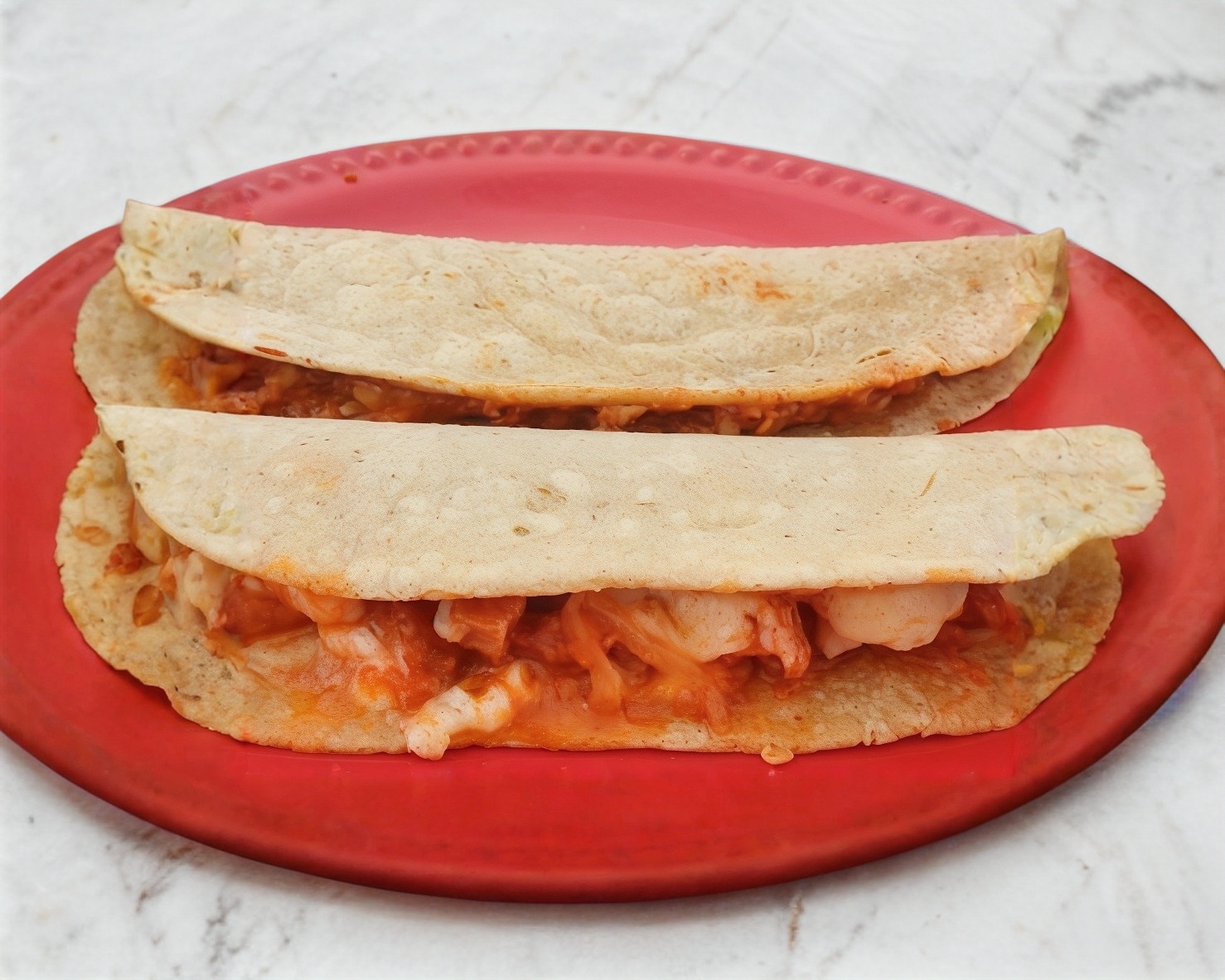 Quesadilla de maíz con queso Oaxaca tamaño mediano.