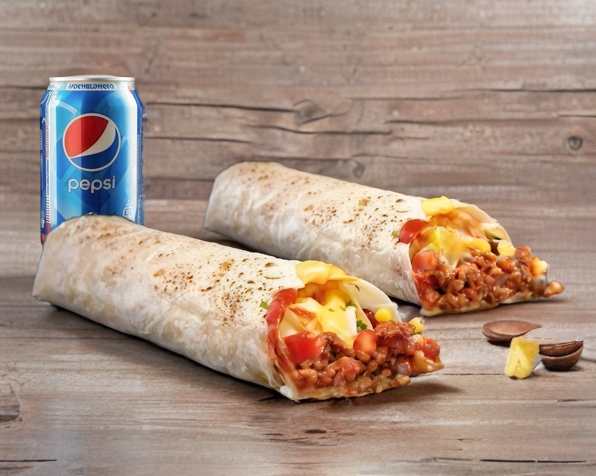 Burrito de Bistec*1 + Burrito de Huevo Rojo*1 + Burrito de Nopales*1 + Burrito de Frijoles con Queso*1 + Burrito de Barbacoa*1 + Pepsi 355 ml*1